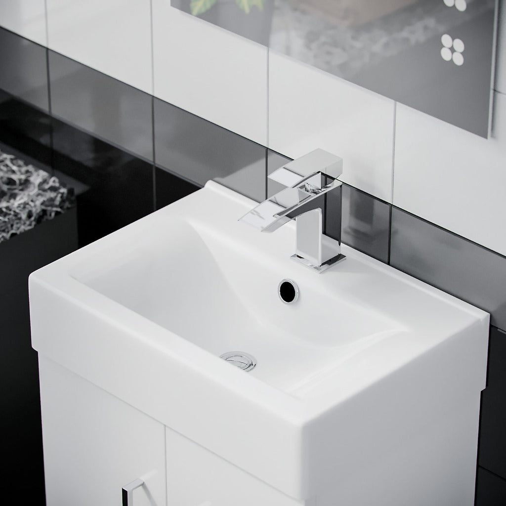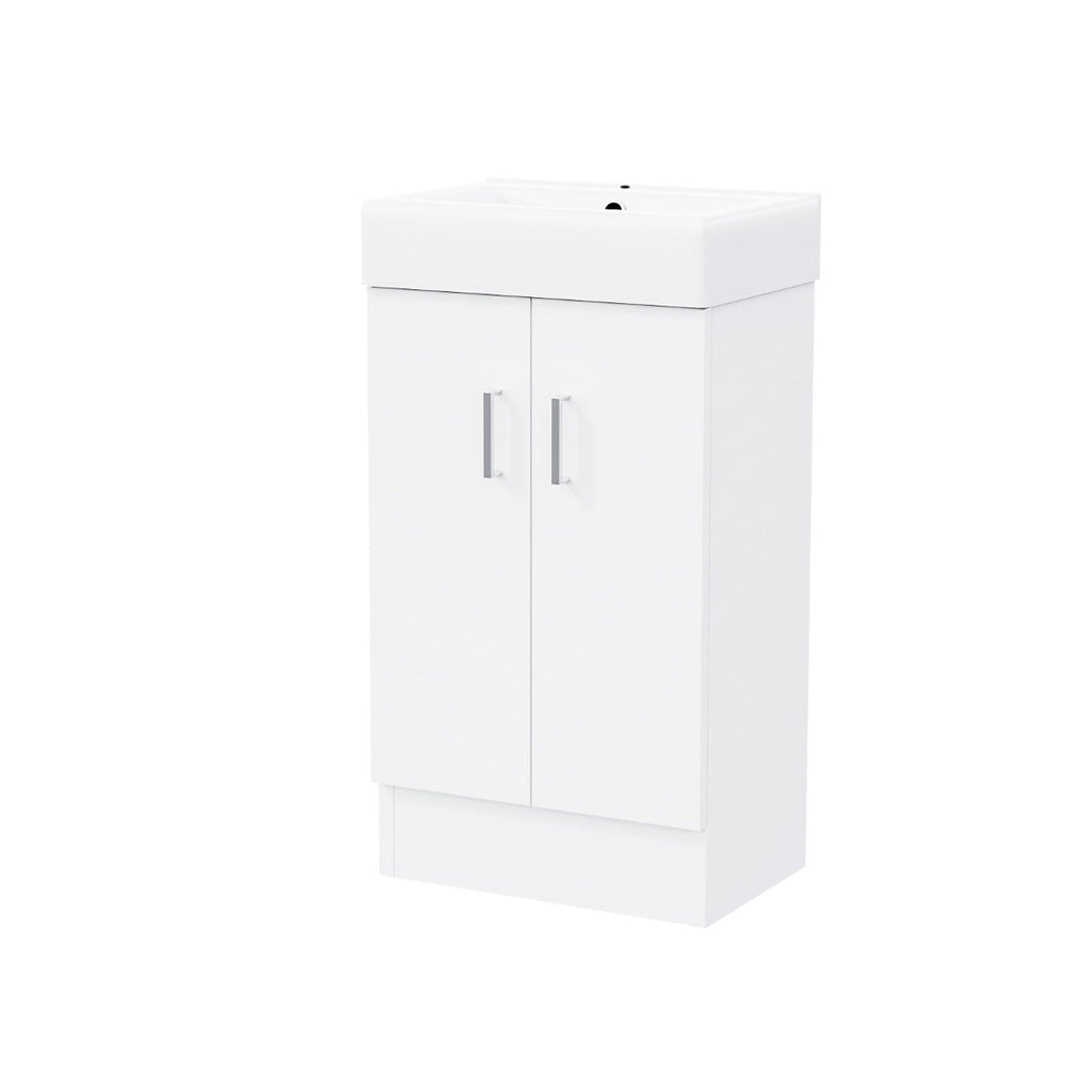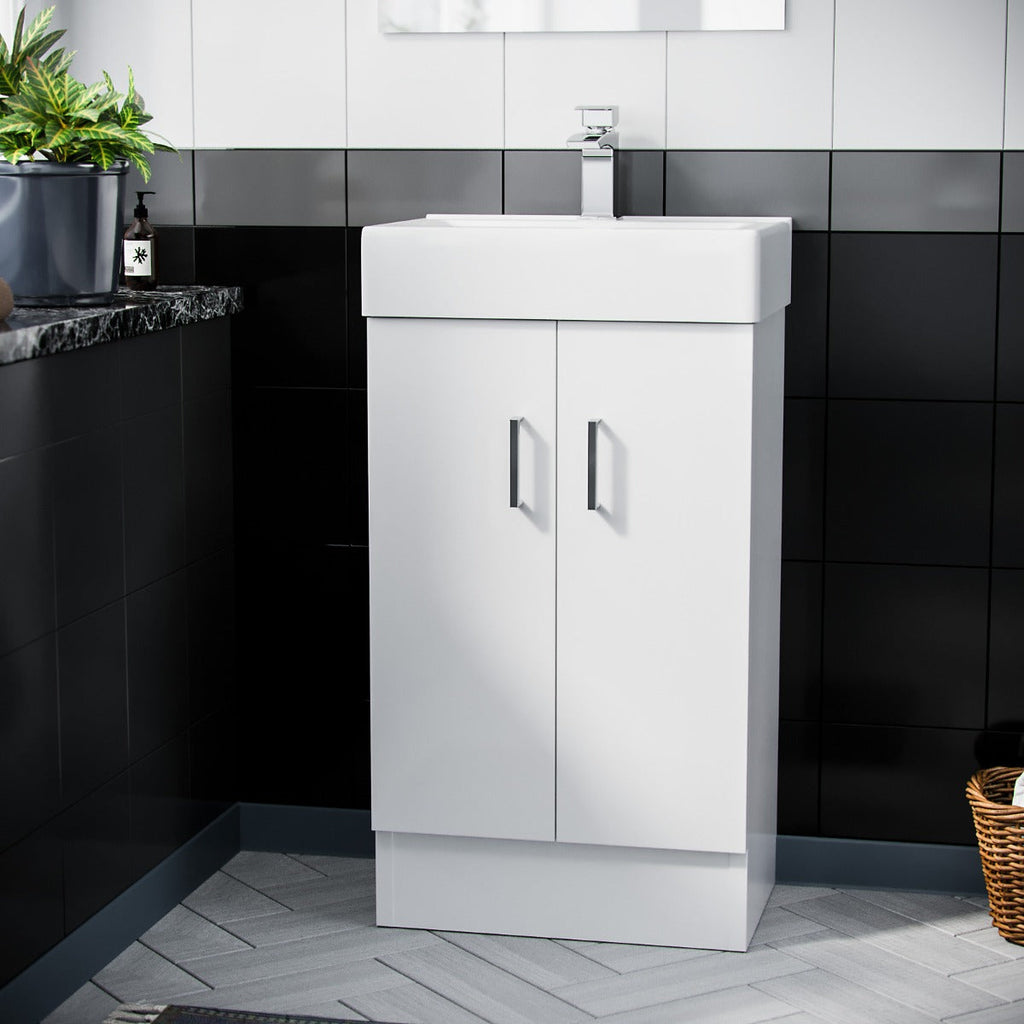 This beautiful 450 mm white gloss freestanding basin vanity unit comes complete with a high-quality basin. Engineered with everyday use in mind, providing a storage solution for your bathroom, our Basin Vanity Unit gives you the best of both worlds, combining incredible durability and a beautiful gloss finish.