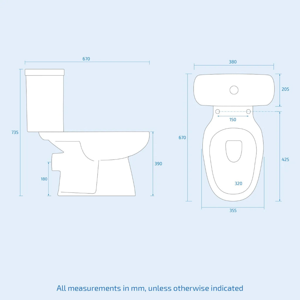 The stunning small cloakroom close-coupled toilet comes complete with a dual flush cistern which makes it safe for people of all ages to use, and help prevent fingers getting trapped.