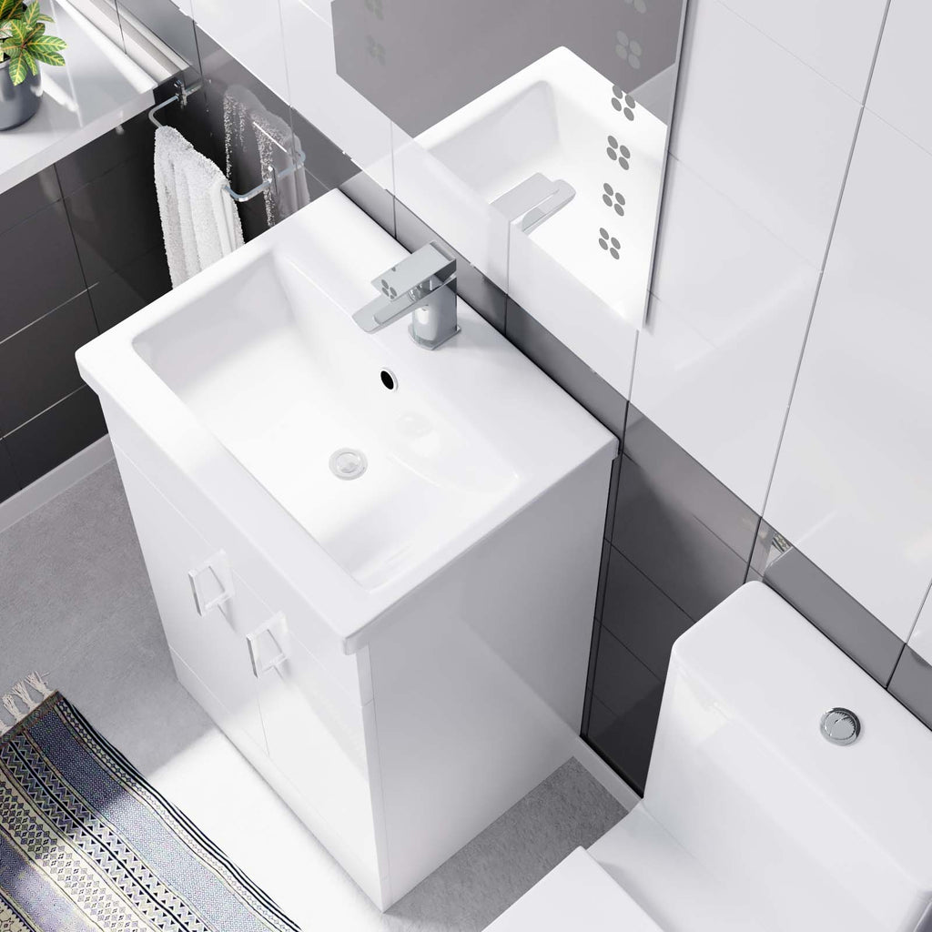 This beautiful 500 mm white gloss freestanding basin vanity unit comes complete with a high-quality basin. Engineered with everyday use in mind, providing a storage solution for your bathroom, our Basin Vanity Unit gives you the best of both worlds, combining incredible durability and a beautiful gloss finish.