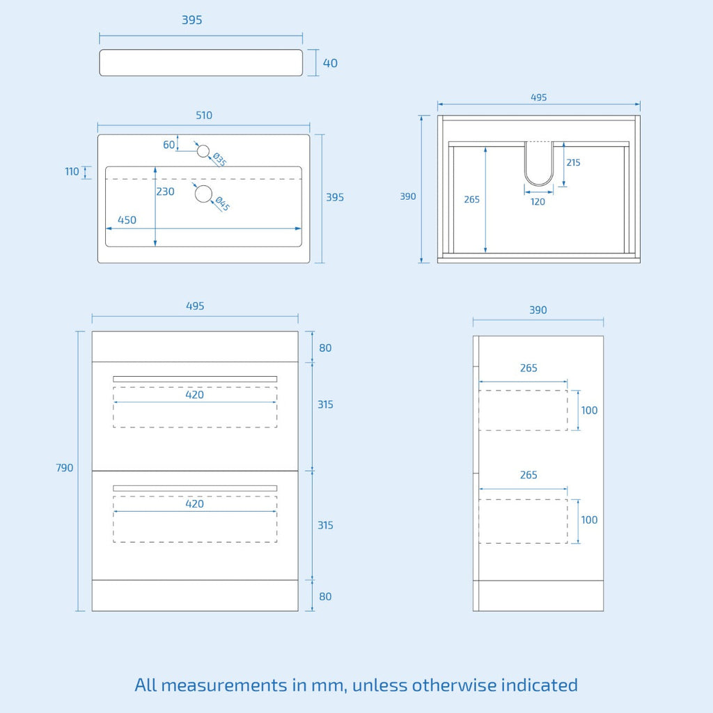 The 510mm Floor Standing 2 Drawer Vanity Unit Cabinets storage units feature soft close runners and are delivered fully assembled to make fitting easy and efficient. This range features a high-quality finish, which is perfect for modern bathrooms.