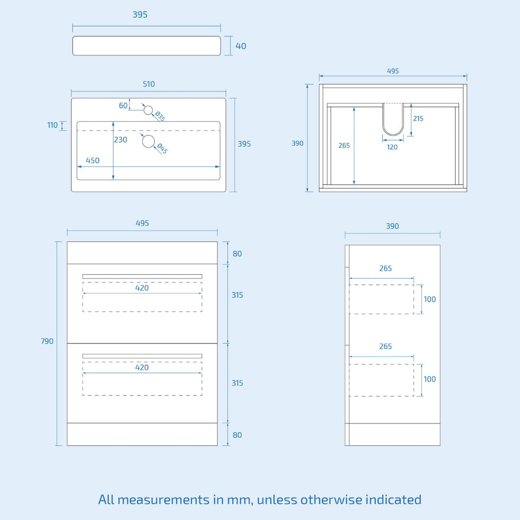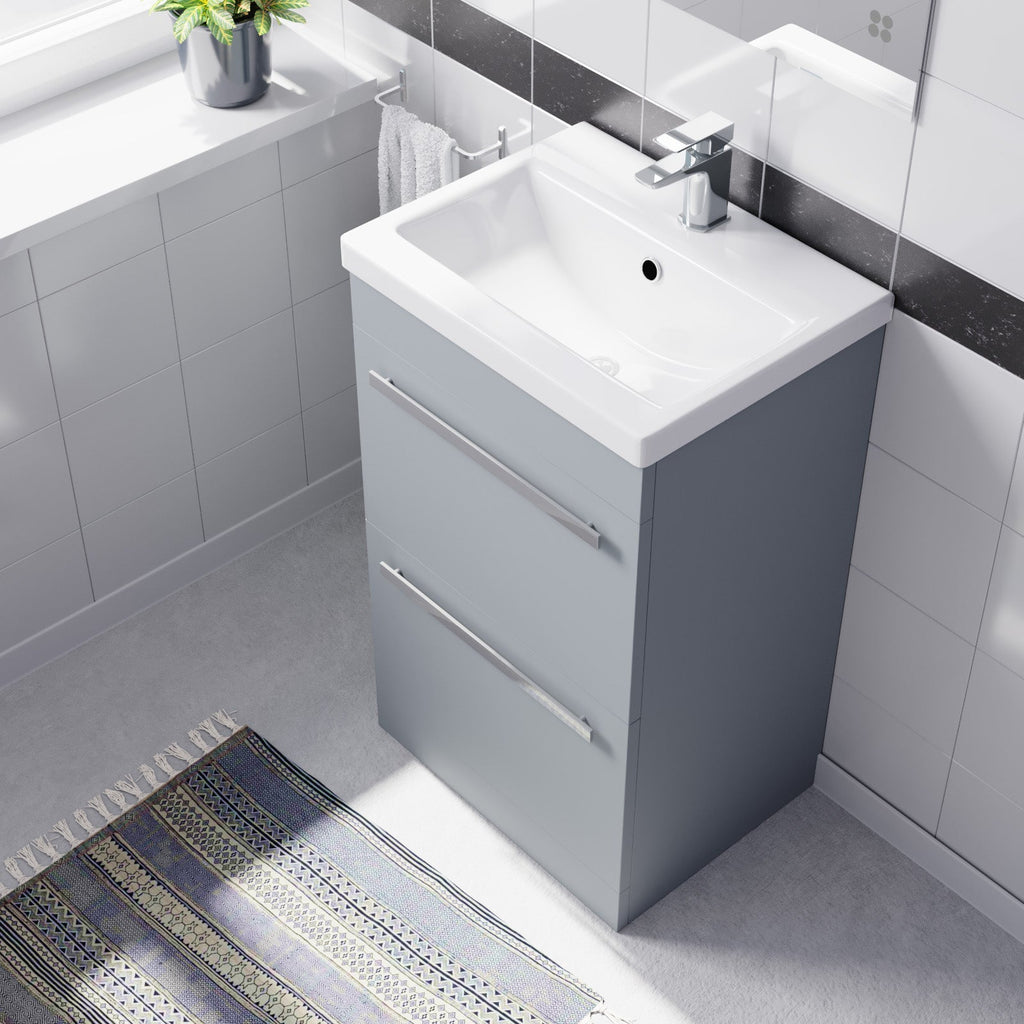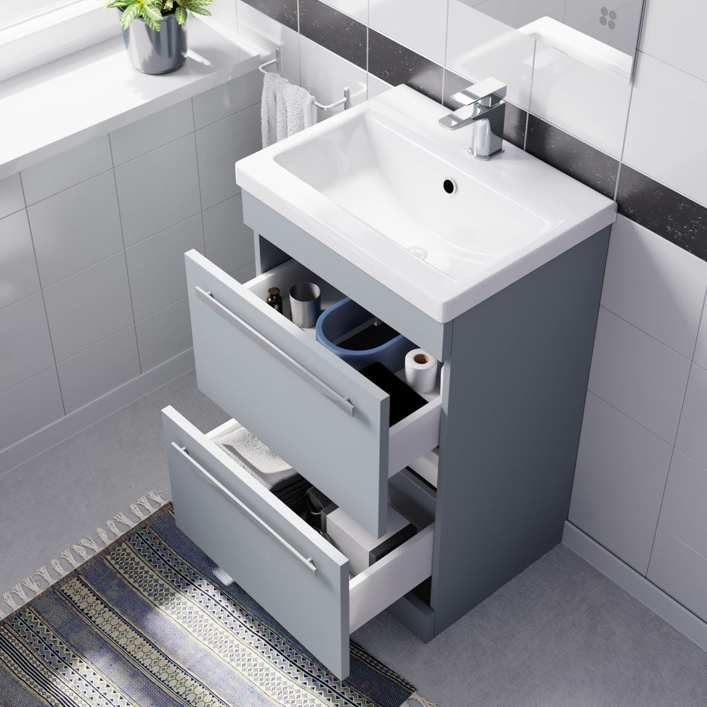 This beautiful 500mm Floor Standing 2 Drawer Vanity Unit comes complete with a high-quality basin, Our bathroom Drawer Cabinet & Sink Basin units are ideal for family bathrooms and add a touch of style to a practical space.