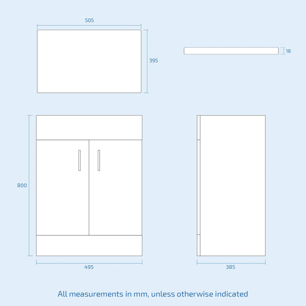 - 1 × 500 mm matte grey freestanding vanity cabinet with matching worktop