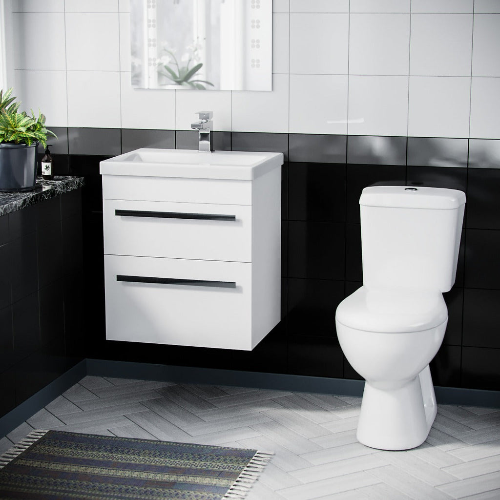 The beautiful 500mm Wall Hung Vanity Unit 2 Drawer Cabinet comes complete with a high-quality basin, Our bathroom Drawer Cabinet & Sink Basin units are ideal for family bathrooms and add a touch of style to a practical space.