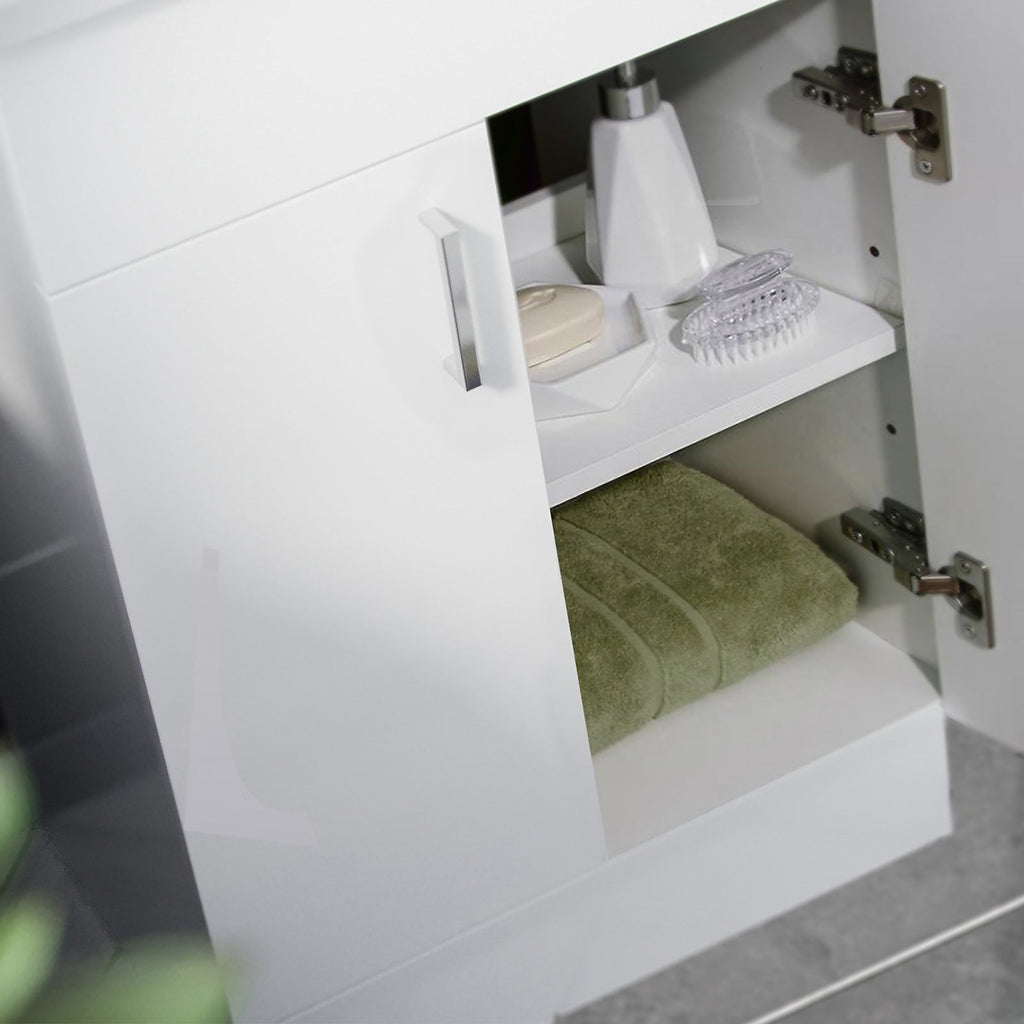 This 500mm freestanding basin vanity and close-coupled toilet set offers ample storage and washing space while minimising the space taken up in your bathroom. The vanity unit is a stylish and functional addition to any bathroom, featuring a high-quality ceramic basin and shelving underneath, making it ideal for everyday use. The vanity unit is constructed with water-resistant materials and has a sleek gloss finish, adding a modern touch to your bathroom. Also, our close-coupled toilet comes complete with a dual flush cistern and soft closed seat, making it safe for people of all ages to use and helping prevent fingers from getting trapped. This furniture combination is ideal for any modern bathroom.