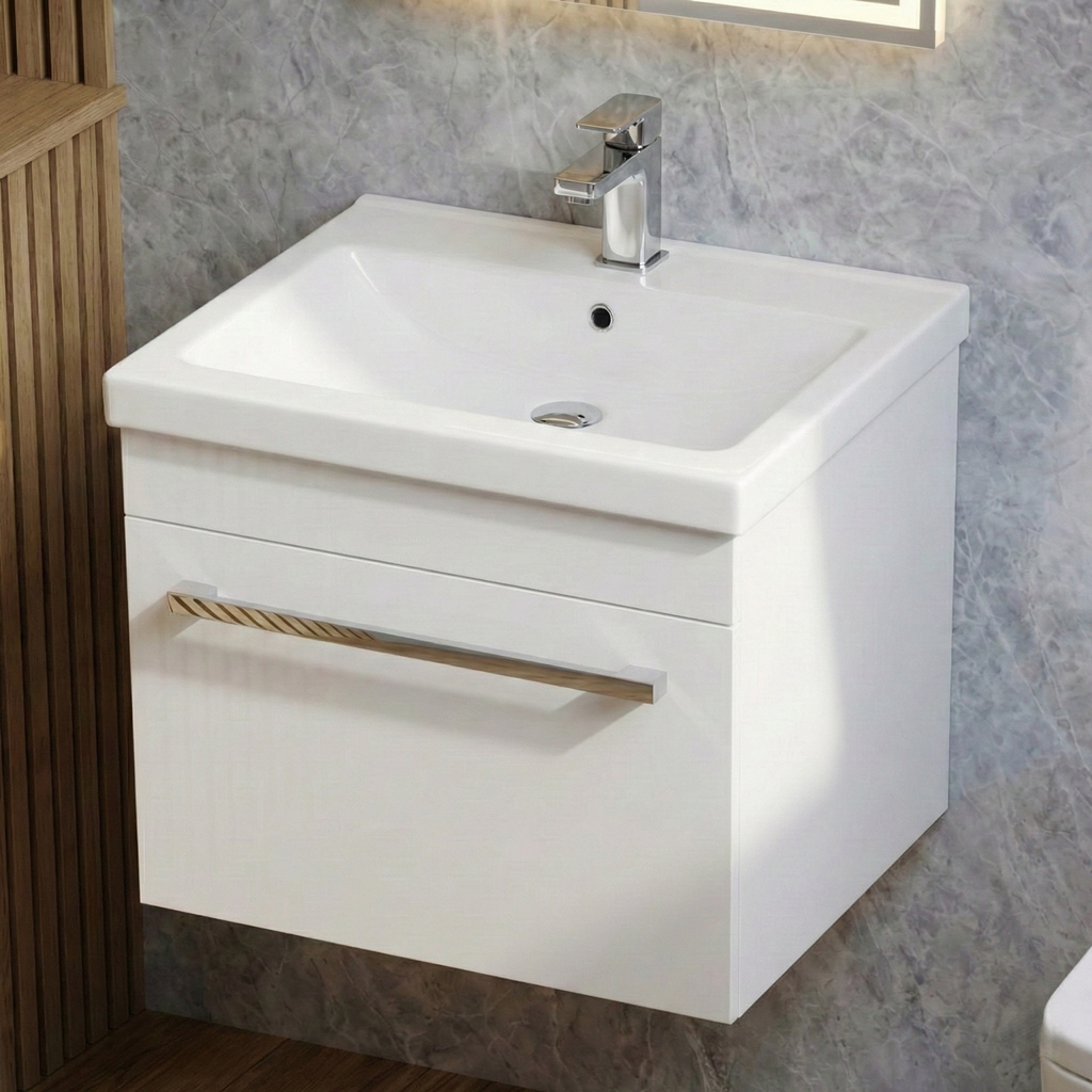 - 500 mm wide wall-hung vanity unit with integrated ceramic sink basin