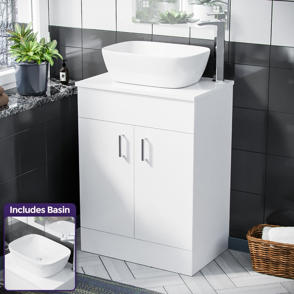 This beautiful 500 mm white gloss freestanding basin vanity unit comes complete with a high-quality countertop basin.