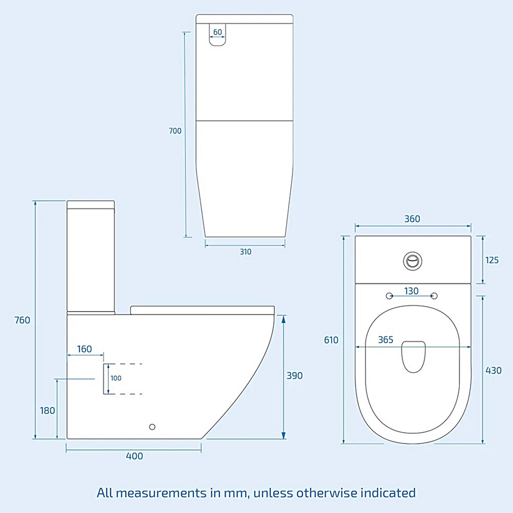 - Flush System: Dual flush (water-efficient 3/6 L)