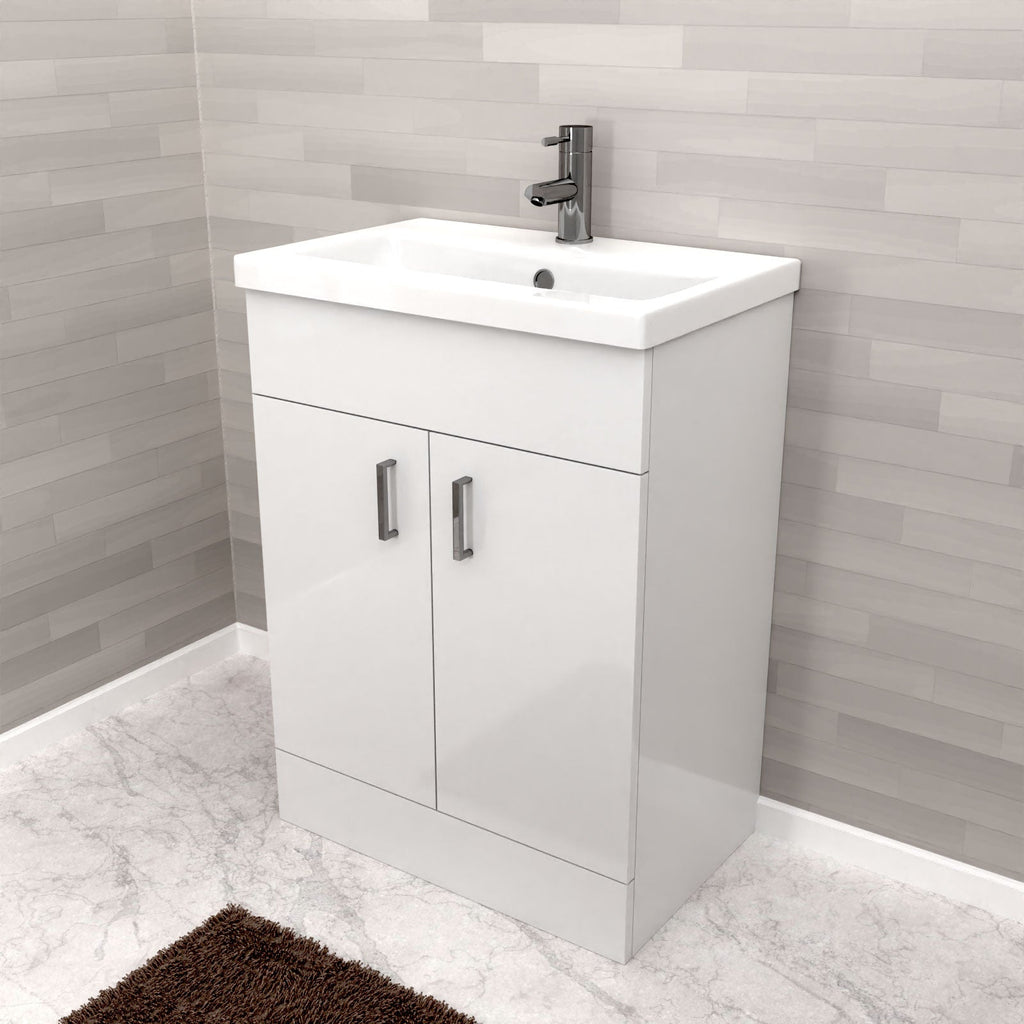 This beautiful 600 mm white gloss freestanding ultra-slim basin vanity unit comes complete with a high-quality basin. Engineered with everyday use in mind, providing a storage solution for your bathroom, our Basin Vanity Unit gives you the best of both worlds, combining incredible durability and a beautiful gloss finish.