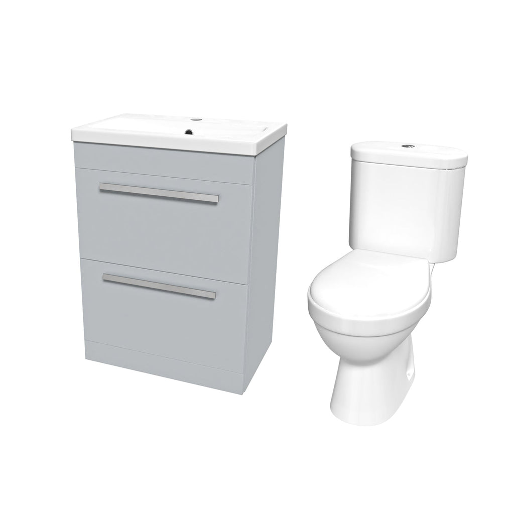 Our 600mm Floor Standing 2 Drawer Vanity Unit Cabinets bathroom storage units are ideal for family bathrooms and add a touch of style to a practical space. The units feature soft close runners and are delivered fully assembled to make fitting easy and efficient. This range features a high-quality finish, which is perfect for modern bathrooms. This suite is the perfect balance of cost and quality, combining a clean, efficient toilet pan with a dual flush cistern. The dual flush cistern helps save water and therefore money, making this a great investment.