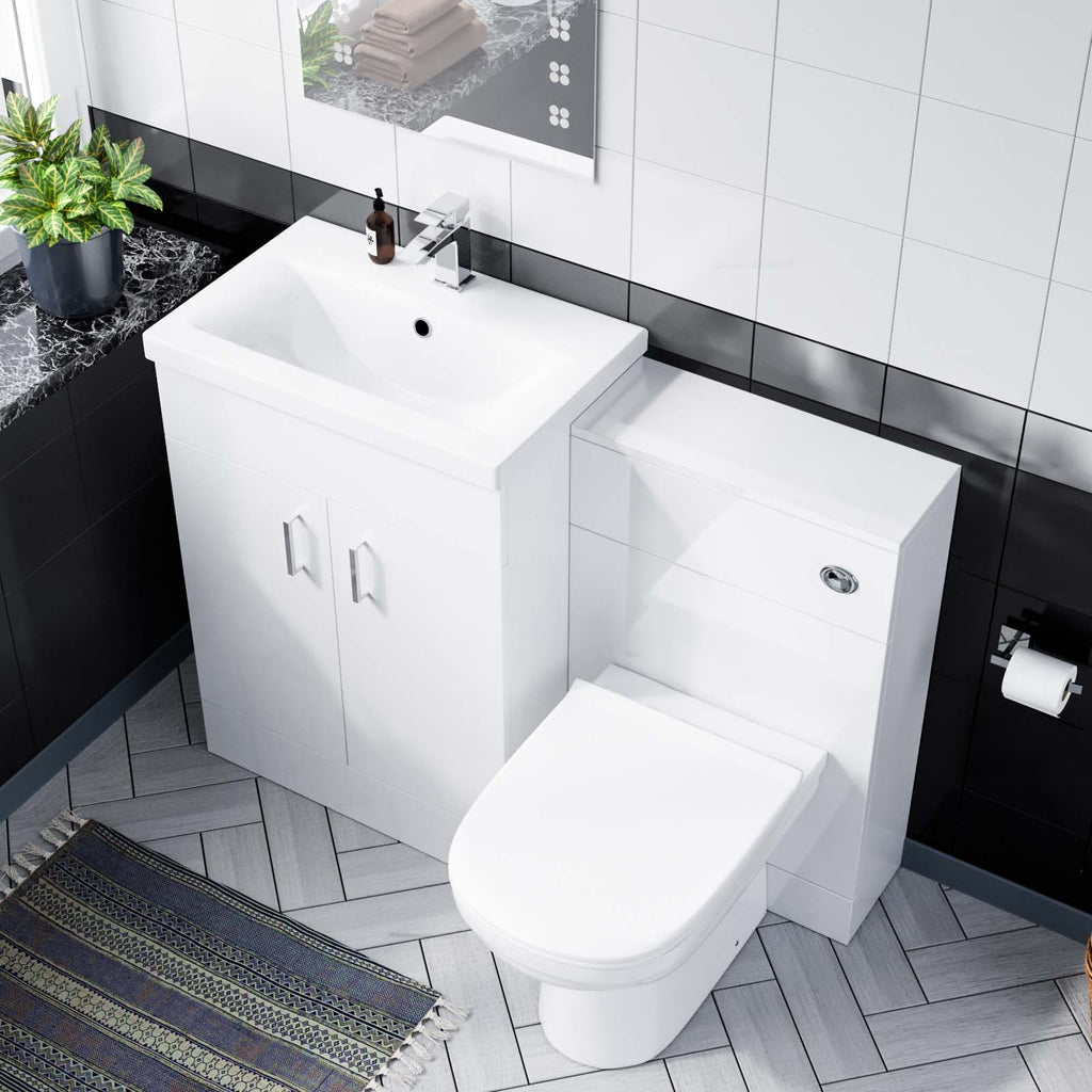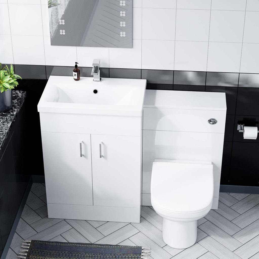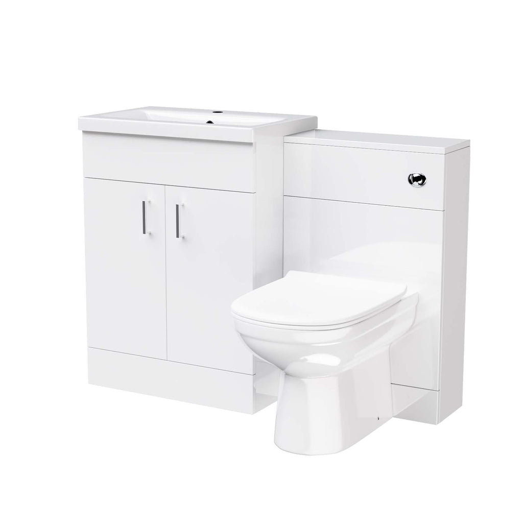 This beautiful 600 mm white gloss freestanding basin vanity cabinet and WC Toilet is complete with a high-quality basin.