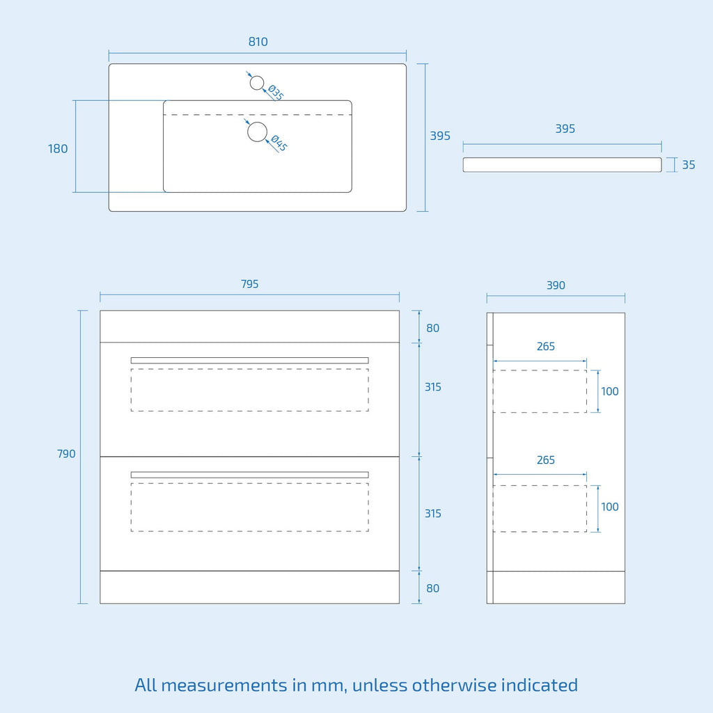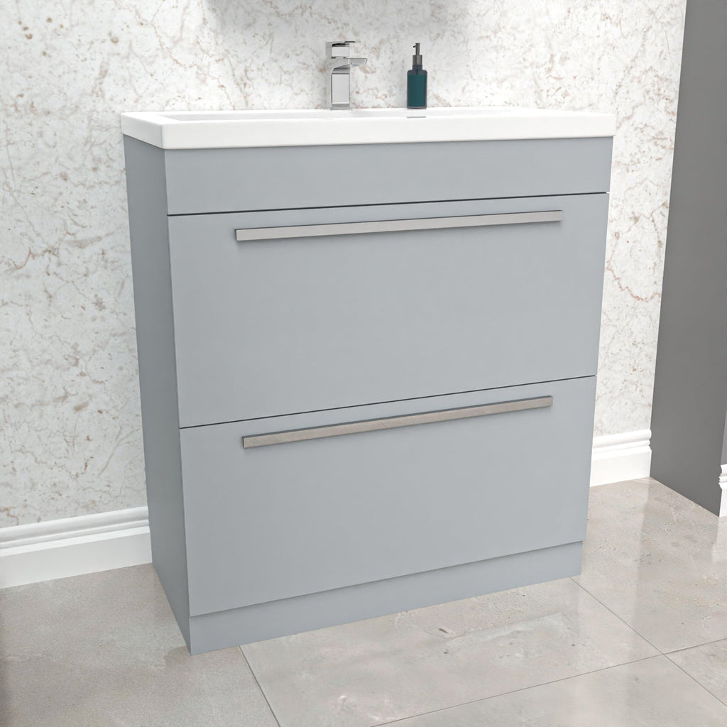This beautiful 800mm Matte Grey 2 Drawers Basin Vanity Unit comes with a high-quality stylish basin, this vanity unit is engineered with everyday use in mind providing a storage solution for your bathroom. Our basin vanity unit gives you the best of both worlds, combining incredible durability and a beautiful gloss finish. With two drawers, it offers ample storage for your bathroom essentials and keeps them neatly organized and within easy reach.