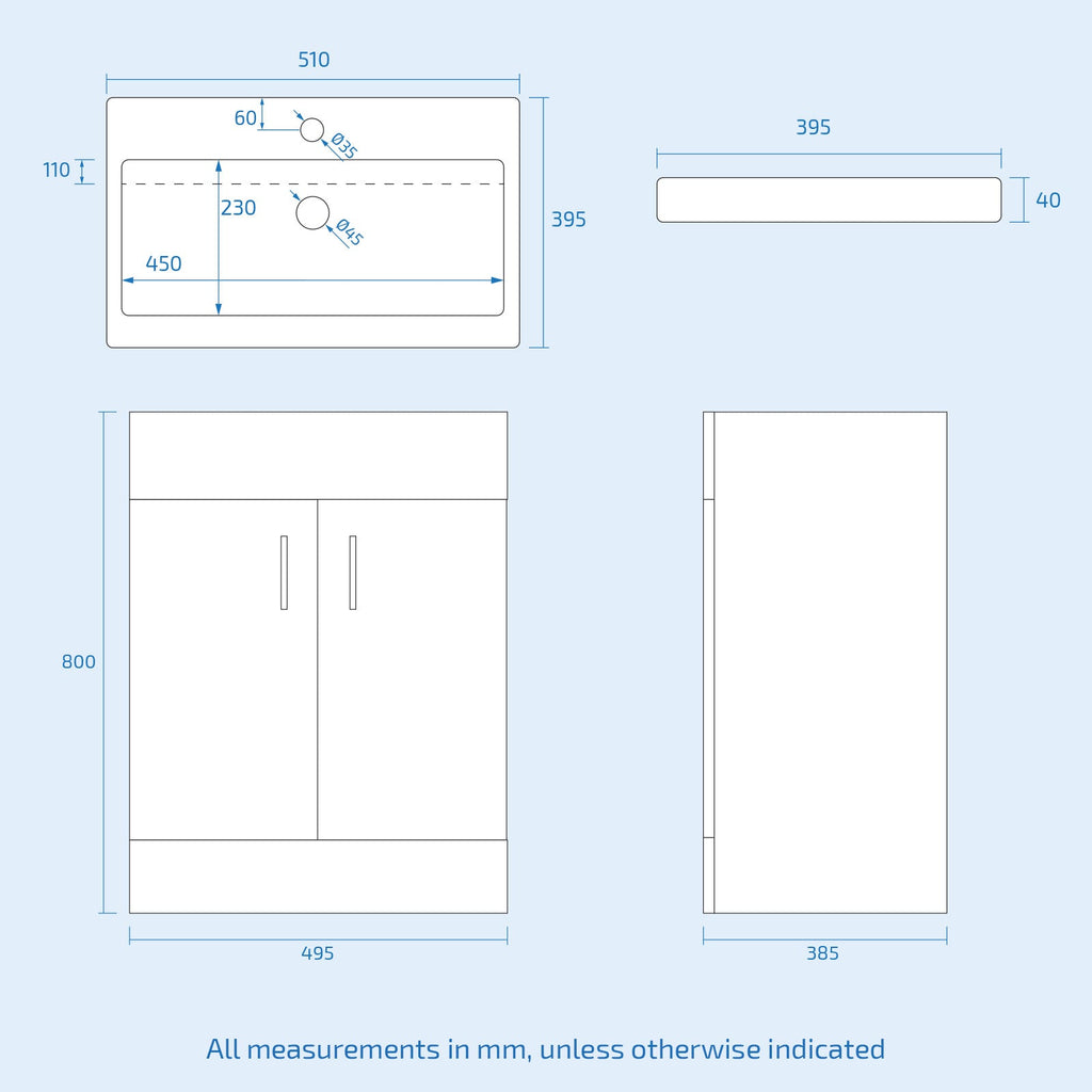 - Excludes basin tap and waste