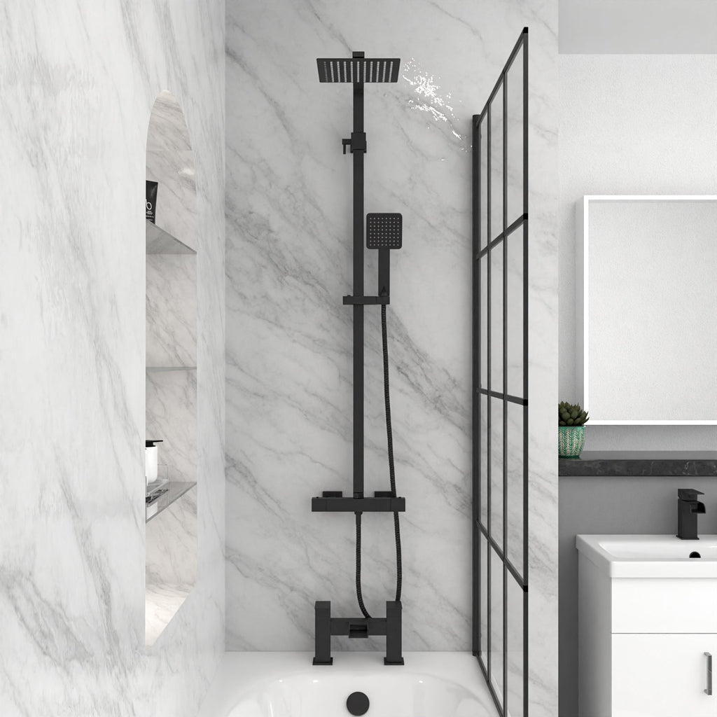 This Black Toilet Vanity Bathroom Suite includes a 1700mm straight edge bathtub with grid shower screen, a basin vanity unit, and close coupled Toilet, providing all essential elements for a complete bathroom suite. The generous size of the bath tub offers ample space for shower or bath with a stylish black grid shower screen. The bath filler tap and thermostatic shower mixer set give you a two way shower experience and meet your needs. The basin vanity unit and a black finish close coupled toilet provides a mix of functionality and aesthetic to your bathroom.