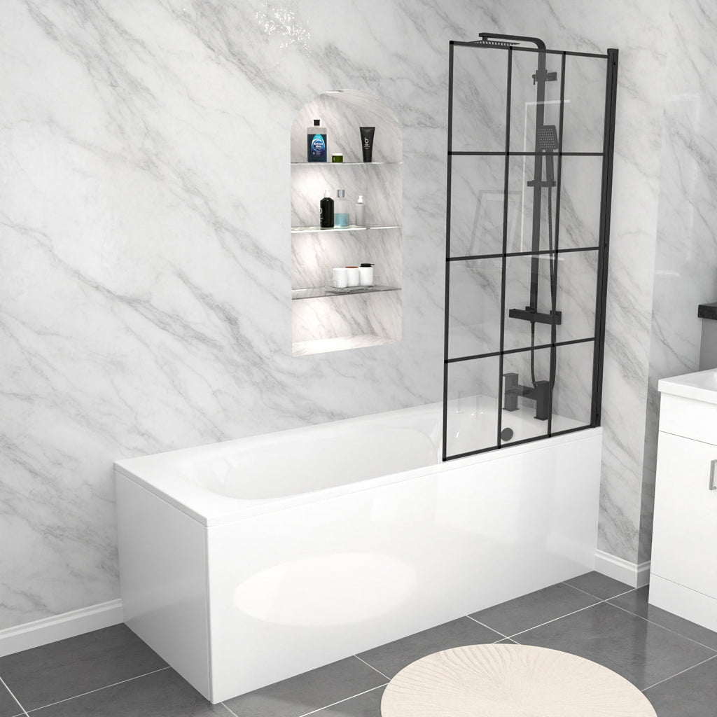 - Black grid shower screen is made from high-quality 5 mm tempered glass