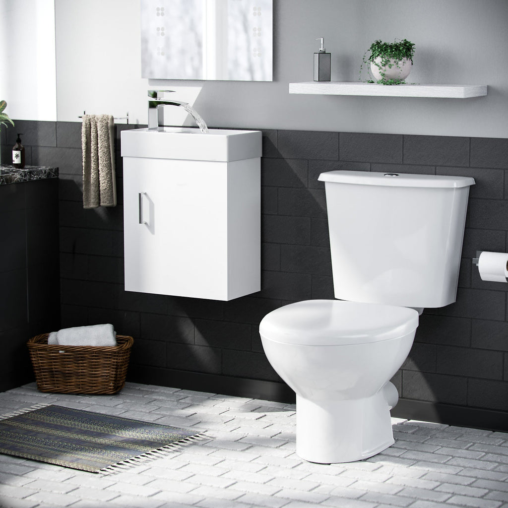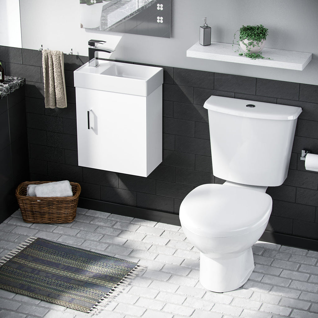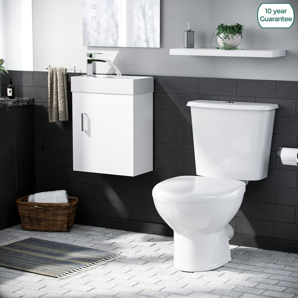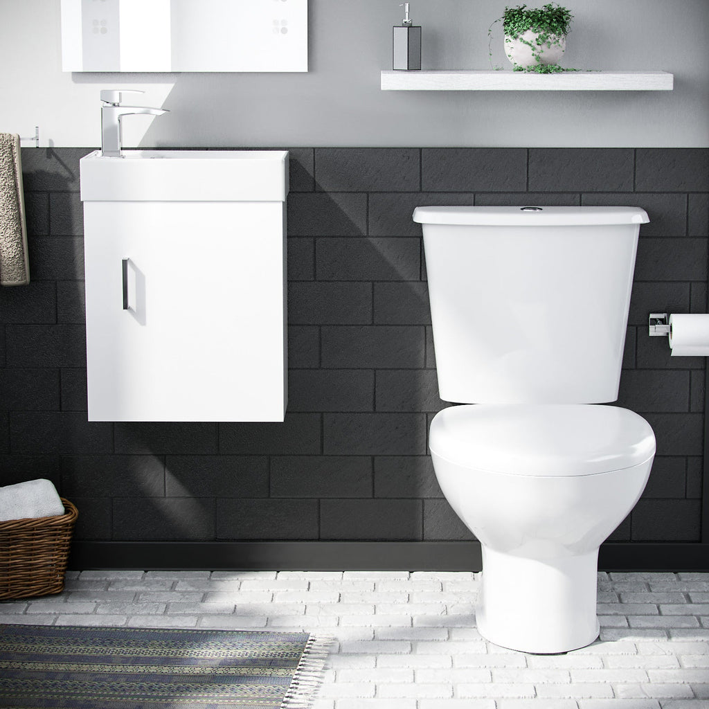 This beautiful 400 mm white gloss wall hung basin vanity unit comes complete with a high-quality basin and with a close-coupled toilet. Engineered with everyday use in mind, providing a storage solution for your bathroom, our Basin Vanity Unit gives you the best of both worlds, combining incredible durability and a beautiful gloss finish.