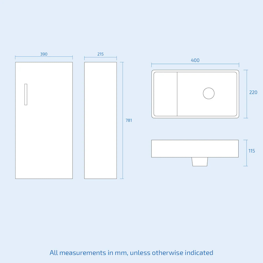 This beautiful 400 mm matte grey floor standing vanity unit comes complete with a high-quality basin and with a close-coupled toilet. Engineered with everyday use in mind, providing a storage solution for your bathroom, our Basin Vanity Unit gives you the best of both worlds, combining incredible durability and a beautiful matte finish.