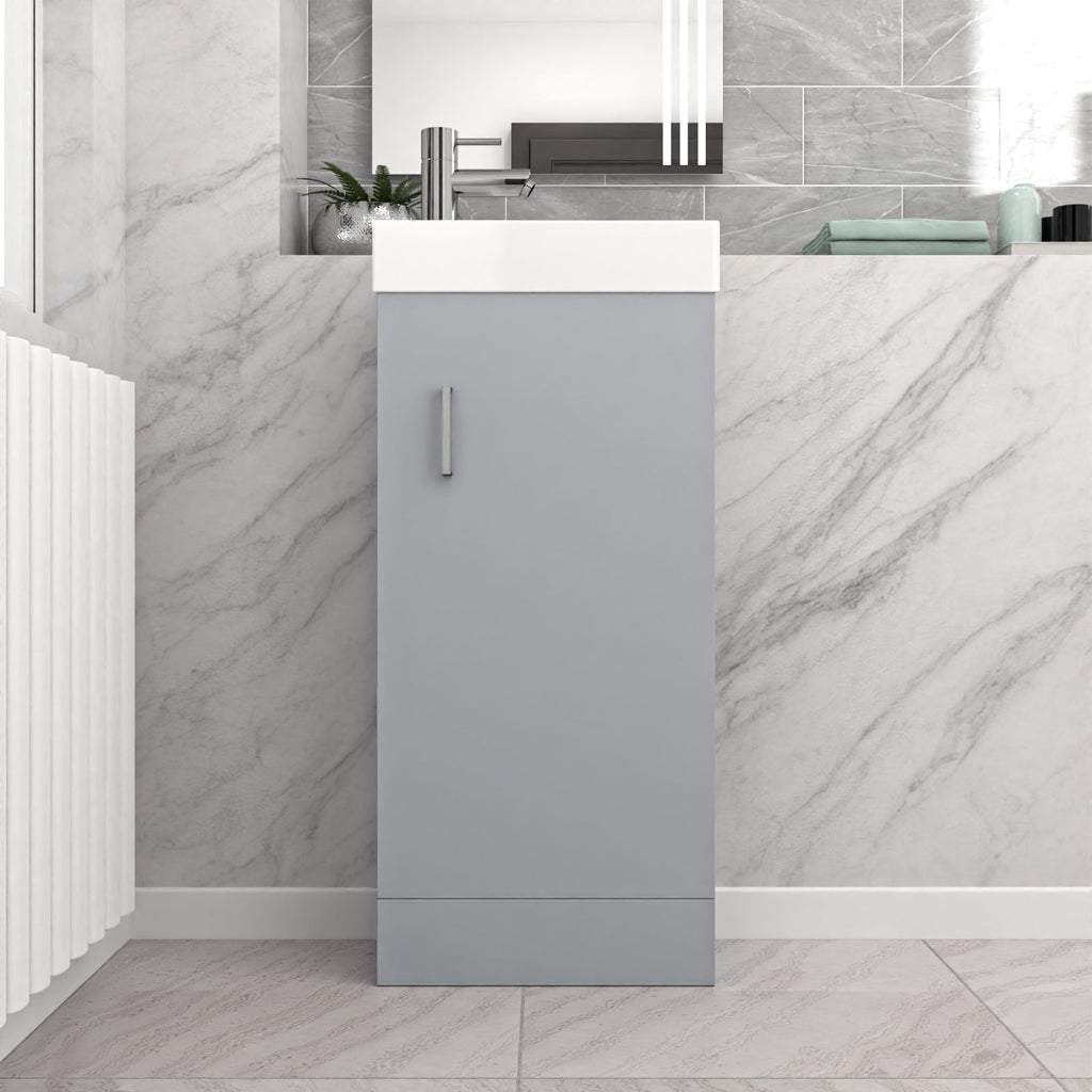 The Basin vanity unit comes complete with a high-quality white ceramic basin sink and tap with waste. While the cabinet has enough storage for your everyday needs.