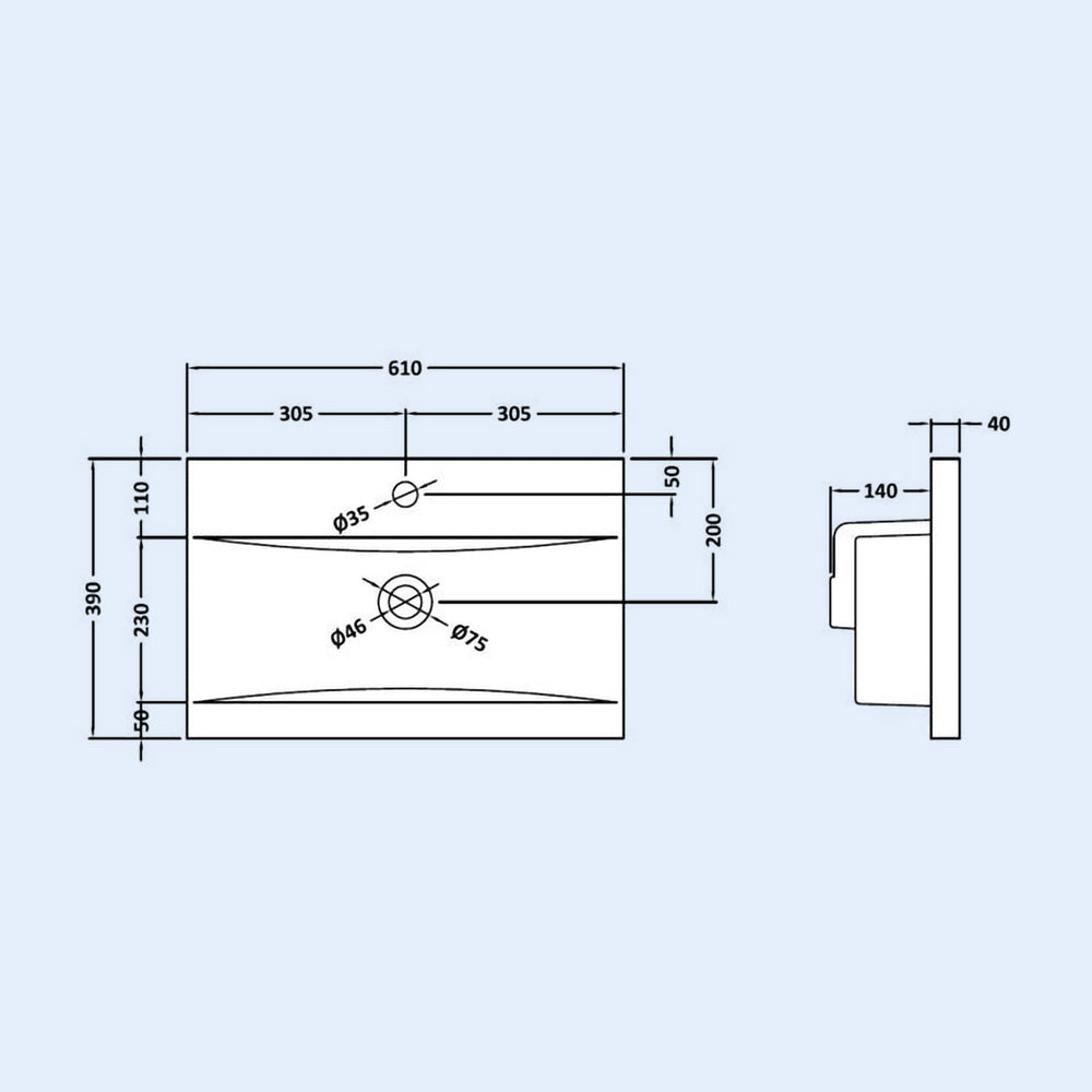 The 600mm Mid-Edged basin with overflow is a sleek and contemporary bathroom sink designed to fit snugly into your vanity countertop. With its slim profile and crisp white finish, it adds a touch of modern elegance to any bathroom space. Made from high quality vitreous china. Overall, this basin combines functionality with minimalist design, offering both style and practicality for your home.