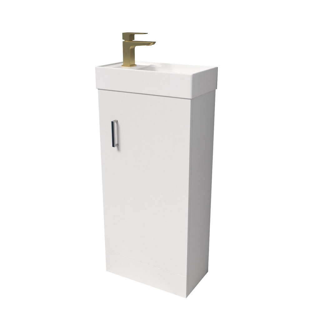 This beautiful 400 mm white gloss freestanding basin vanity unit comes complete with a high-quality basin. Engineered with everyday use in mind, providing a storage solution for your bathroom, our Basin Vanity Unit gives you the best of both worlds, combining incredible durability and a beautiful gloss finish.