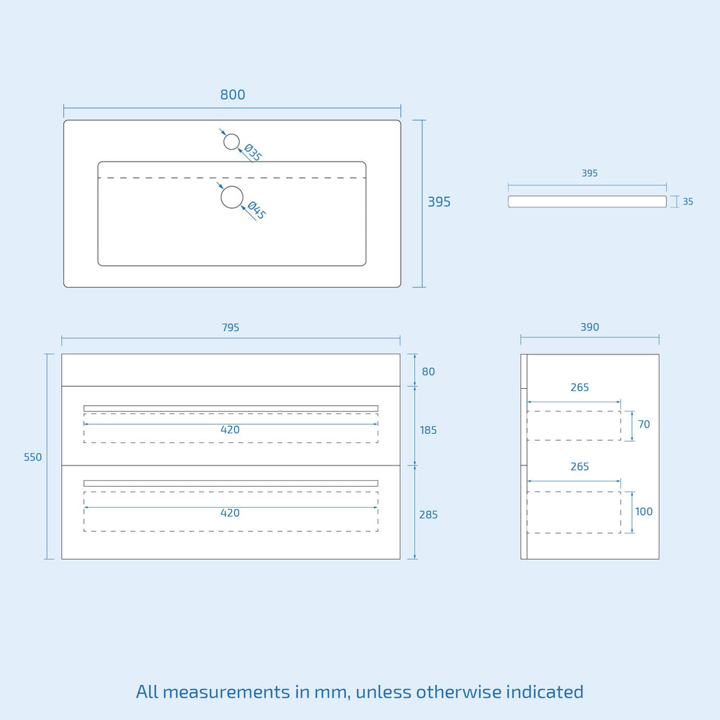 Our 800mm Wall Hung 2 Drawer Vanity Unit Cabinets bathroom storage units are ideal for family bathrooms and add a touch of style to a practical space.