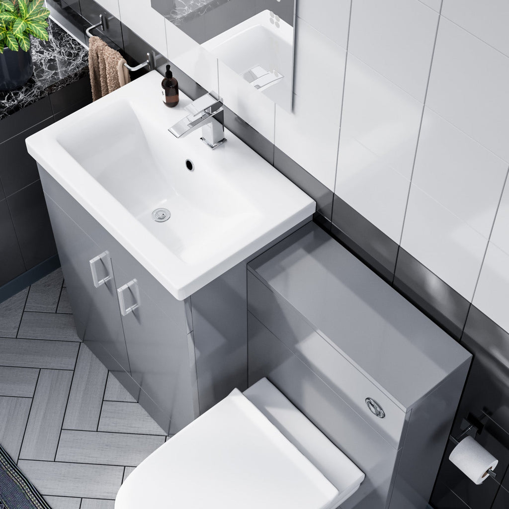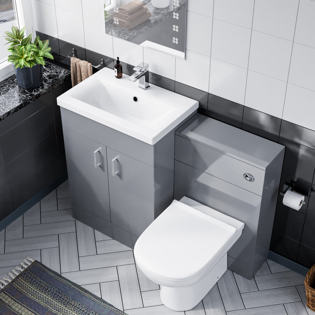 This beautiful 600 mm grey gloss freestanding basin vanity cabinet and WC Toilet comes complete with a high-quality basin.