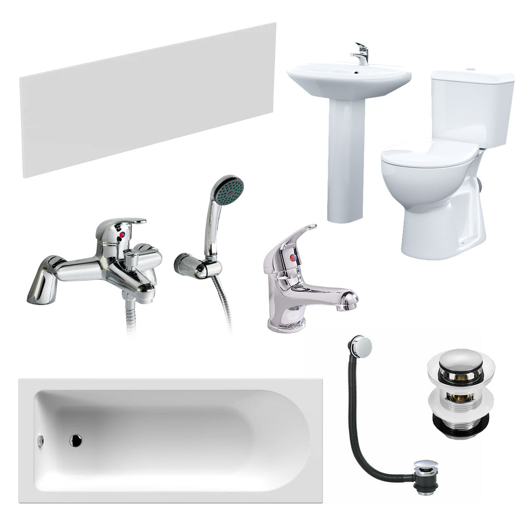 A great combination of essential bathroom items including a Close Coupled Toilet, Ceramic Basin With Full Pedestal, and Round Bath Tub with Front Bath Panel. The Kentucky bath suite can provide the perfect choice for your bathroom.
