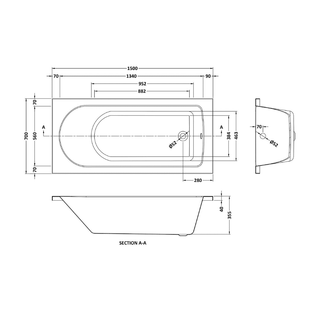 - Width: 1500mm, Depth: 700mm, Height: 355mm