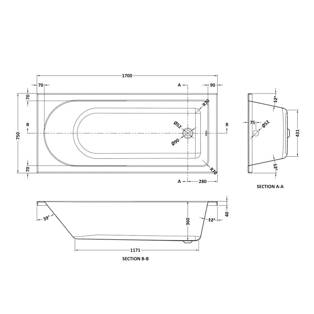 With its generous dimensions of 1700mm, you'll have plenty of space to unwind and enjoy a luxurious bath. The single-ended design allows for easy access to the taps and waste, ensuring convenience and practicality.