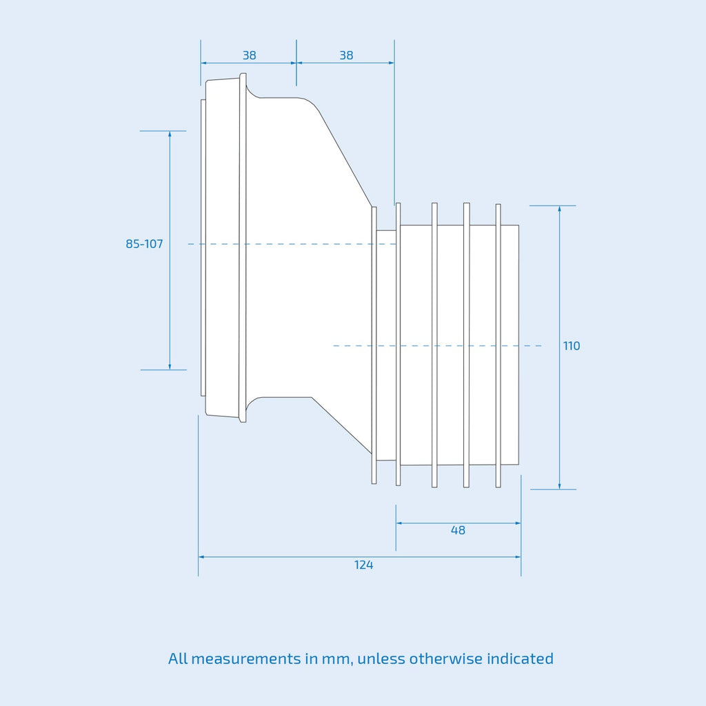 • 85-107mm inlet suits all pan spigots Adjustable Length.