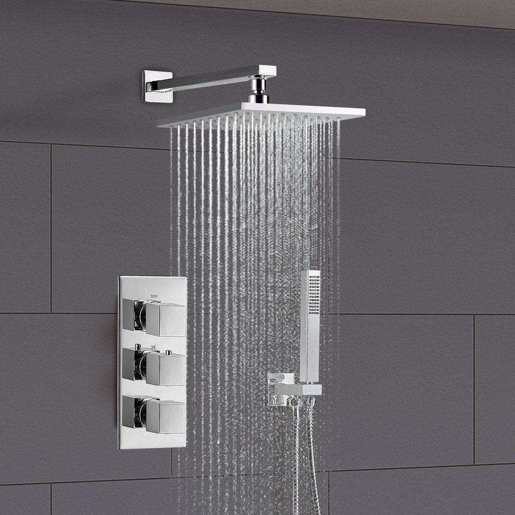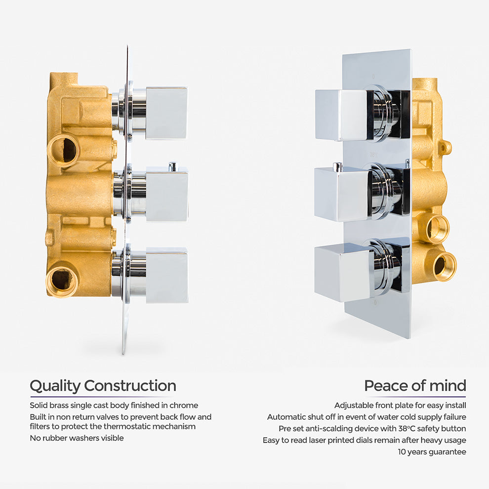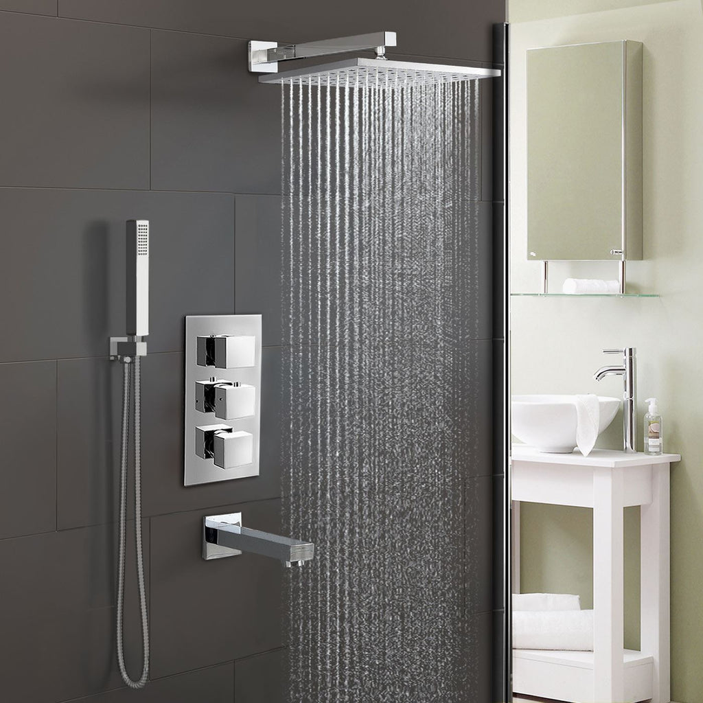 This square concealed thermostatic mixer valve shower set is a perfect addition to any bathroom. The thermostatic mixer valve gives you complete temperature control with a built-in anti-scalding device, so you'll never have to worry about a drop in temperature again.