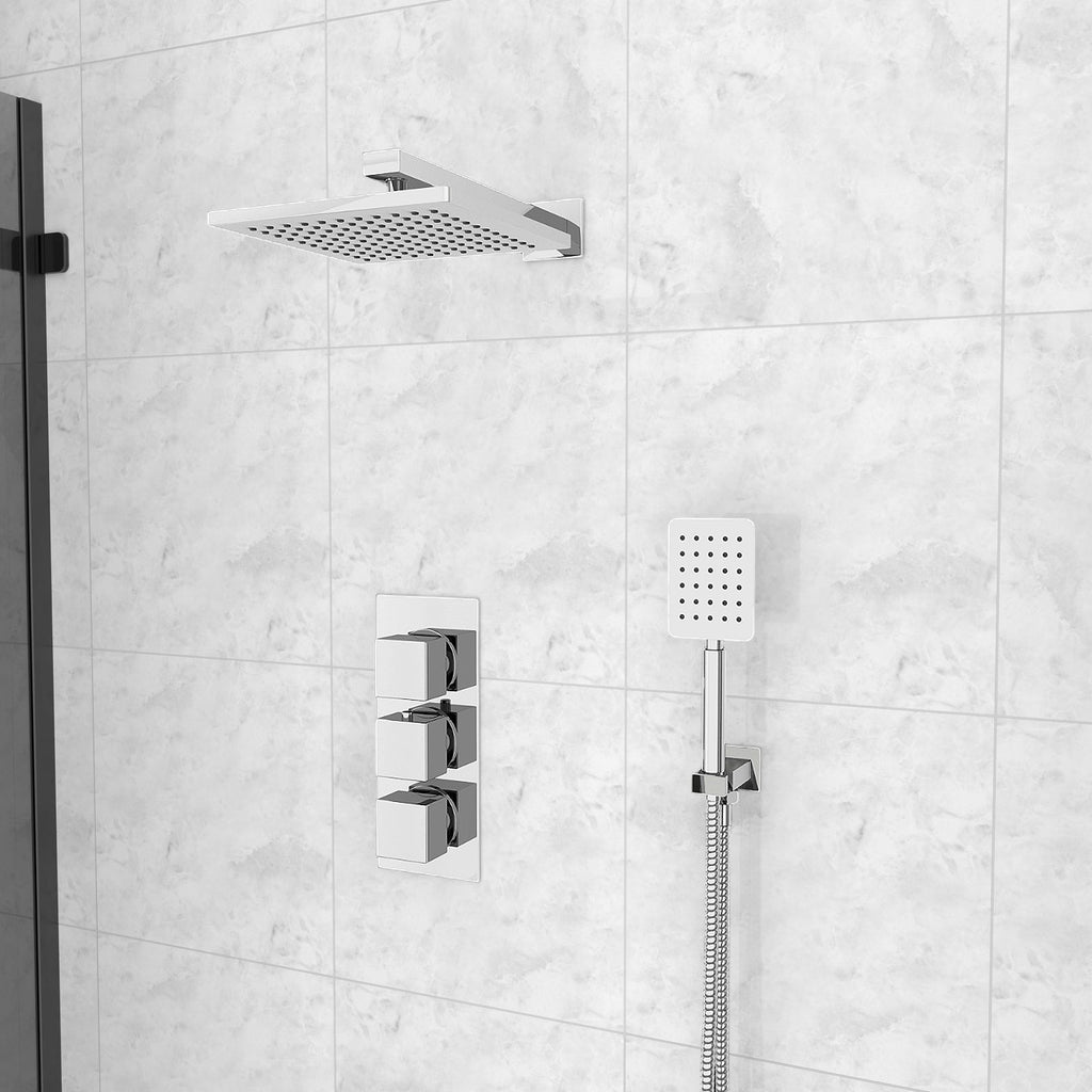 This square concealed thermostatic mixer valve shower set is a perfect addition to any bathroom. The thermostatic mixer valve gives you complete temperature control with a built-in anti-scalding device, so you'll never have to worry about a drop in temperature again.