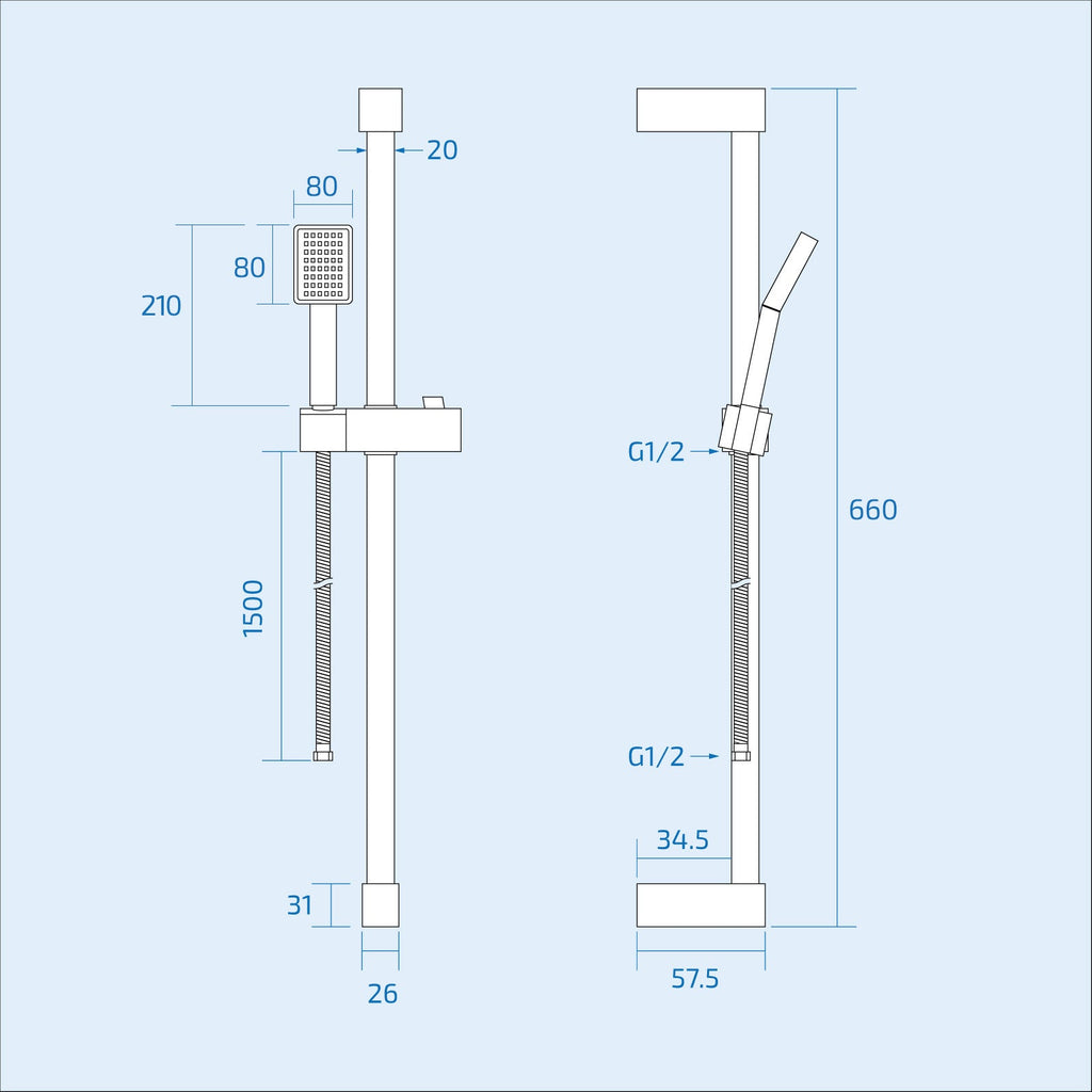 - Shower head dimensions: 300mm x 300mm x 4mm