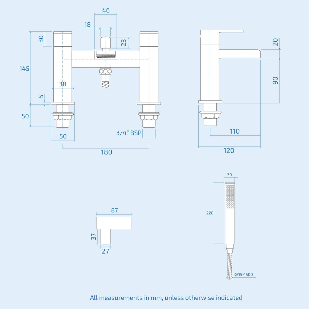 - Twin Lever Handle: controls Hot and Cold temperature and flow