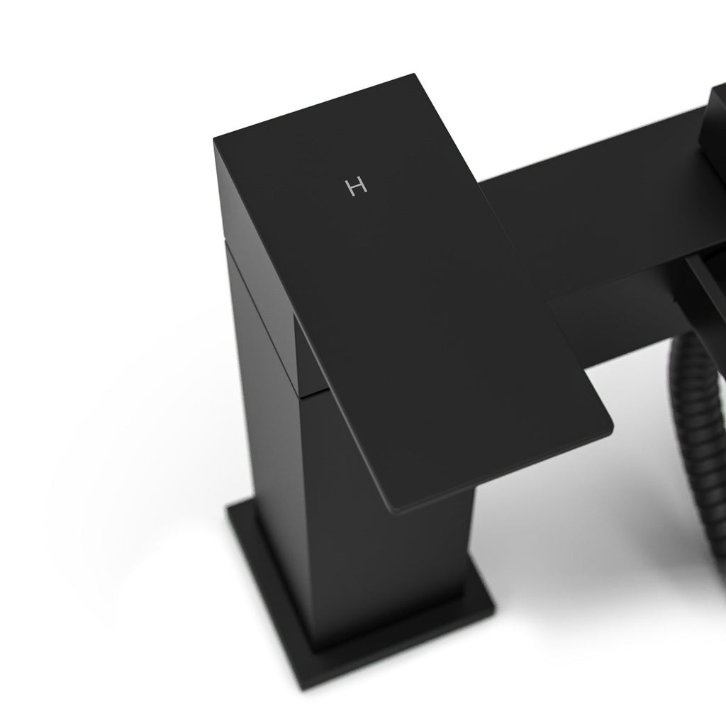 This modern matte black bathroom tap set features a stylish waterfall bath filler, a matching basin mixer tap, and a coordinating click-clack waste. With a bold square design and smooth flat spouts, this set adds a sleek, contemporary touch to any bathroom. Ideal for high-end, minimalist spaces.