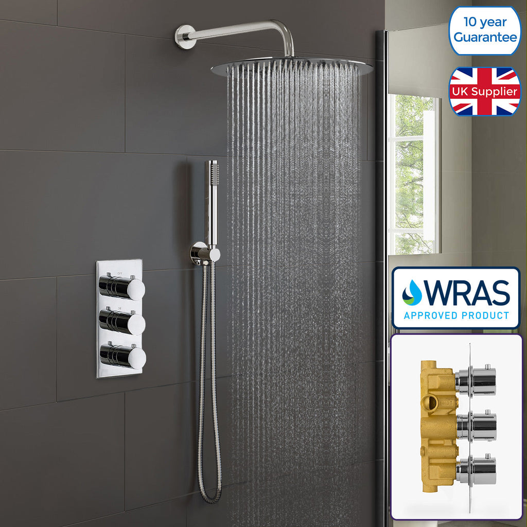 - Orta Round 3 Dial 2 Way Chrome Concealed Thermostatic Shower Mixer Valve