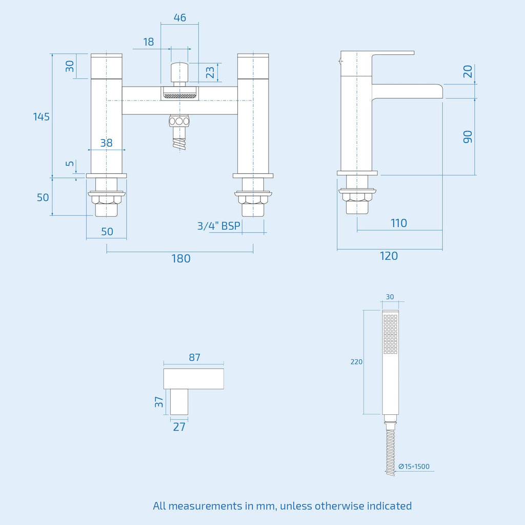 - Subject to a minimum pressure of 0.5bar to maximum of 3bar