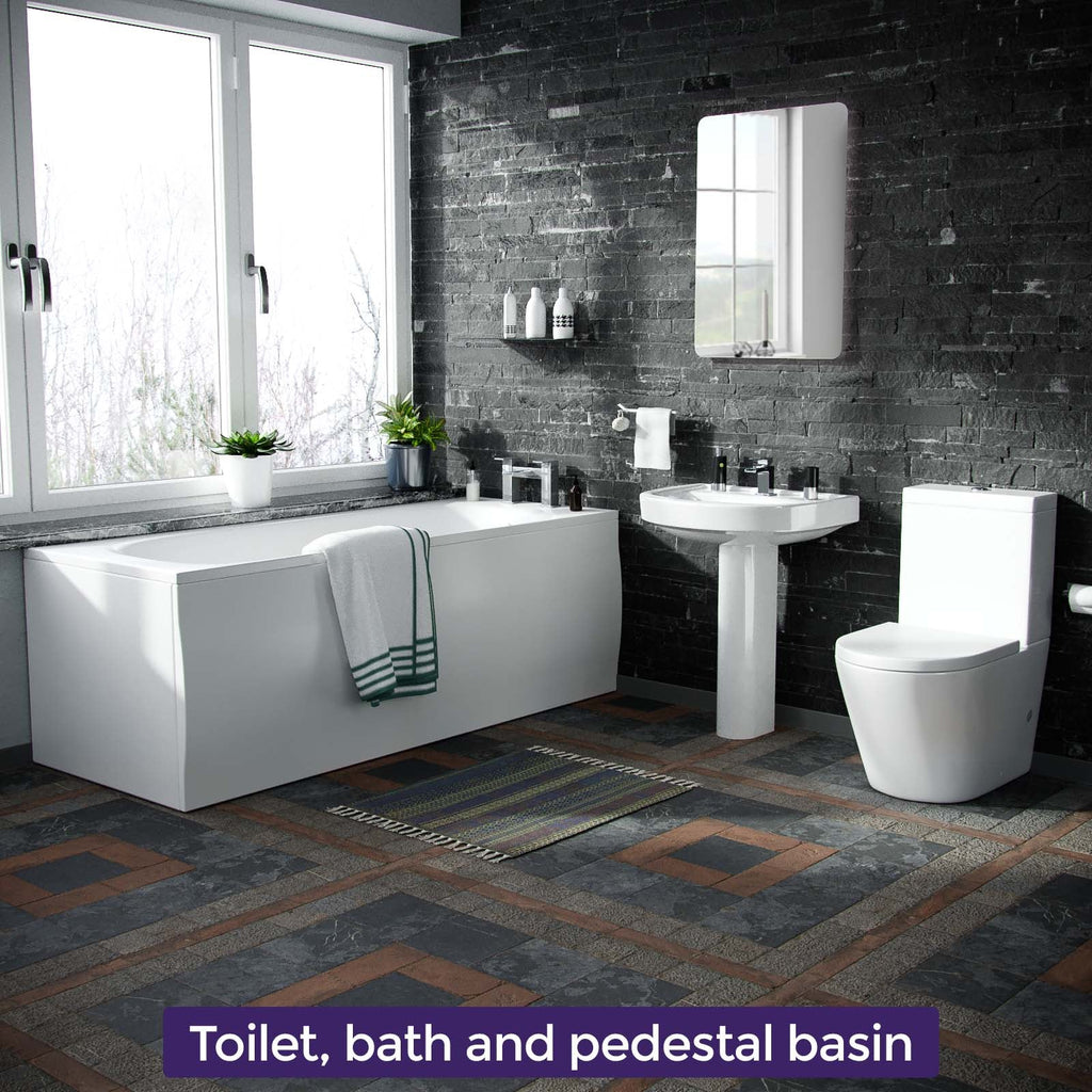This unique bathroom suite features a stunning toilet, a beautiful pedestal basin and a straight edge bath is perfect for any size bathrooms.