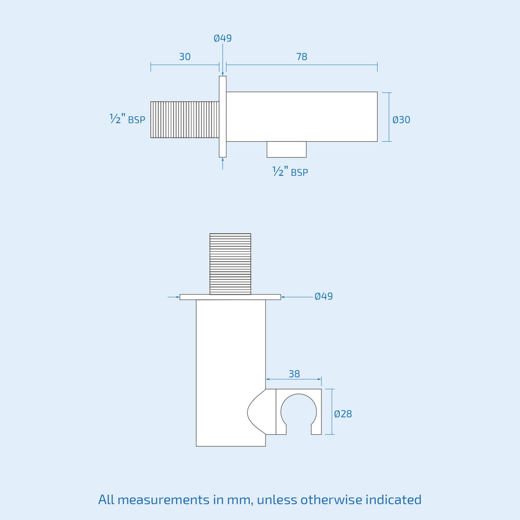 - Optional 1.5m flexible, stainless steel, braided shower hose available.