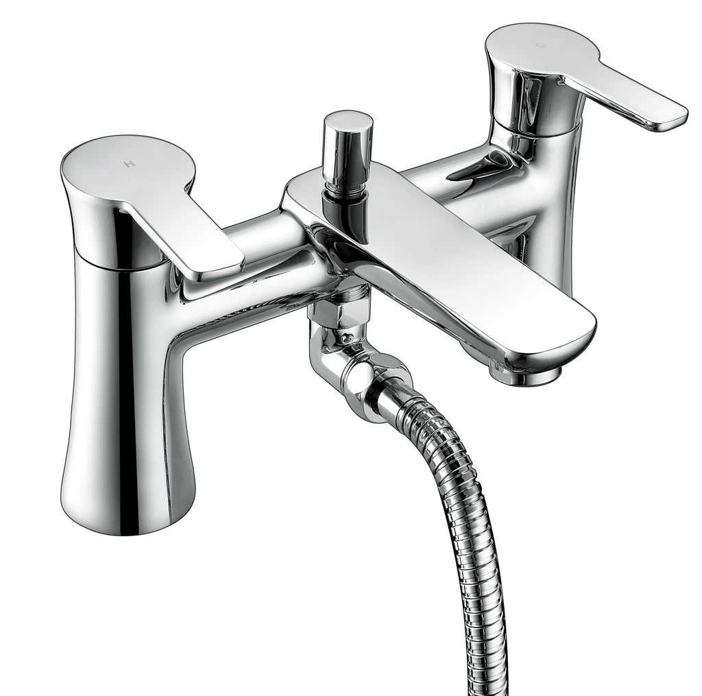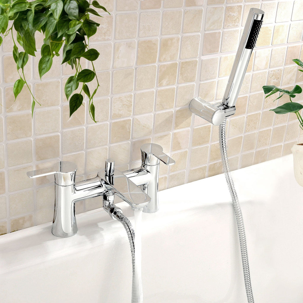 Our Chrome Perth Thermostatic Bath Shower Mixer Tap with Pencil Handset and Wall Fixing Bracket with its' strong lines and streamline ergonomic design makes for a great addition to any bath.