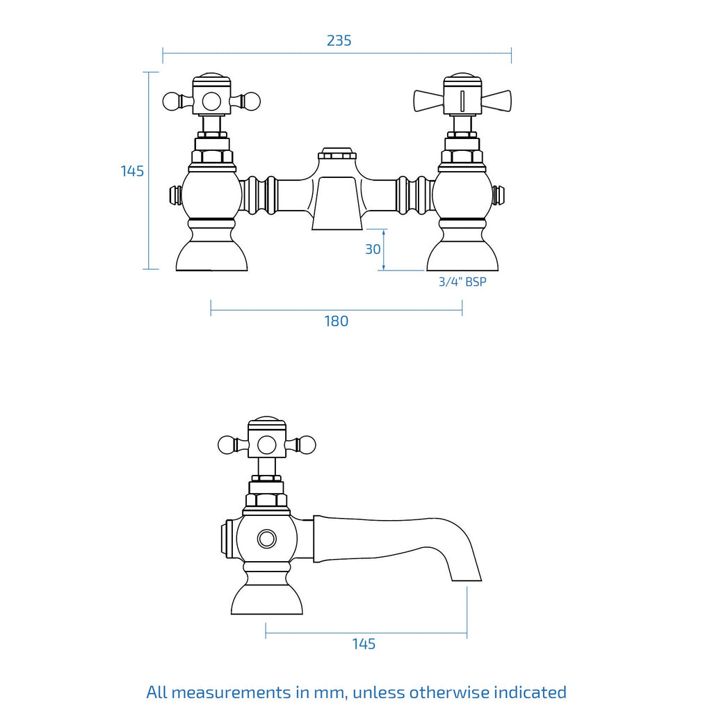 Beautifully crafted and inspired traditional taps, traditional bath filler taps are the perfect upgrade for the traditional bathroom. It's elegant crosshead handles and classic white indices adds to the timeless look, while the ceramic disc technology ensures long life and smooth operation. Made from high grade brass with a durable chrome finish.