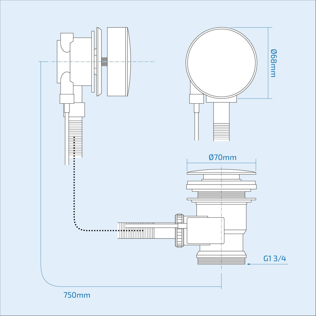 A high-quality modern easy clean click clack bath waste with overflow, controlled by a simple push button mechanism for that finishing touch in your bathroom and provides excellent performance. The click clack waste is removable for cleaning purposes.