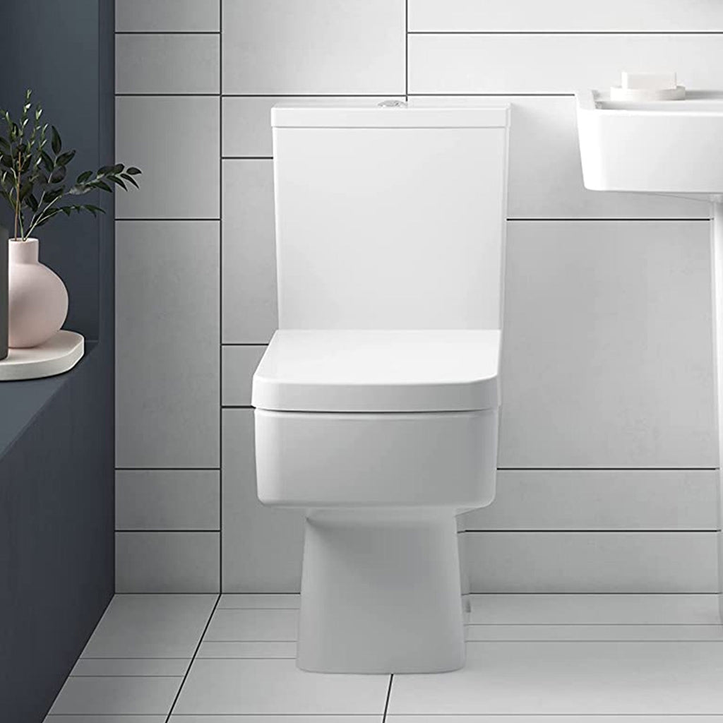 The Square Close Coupled Toilet features not only a cost-efficient dual flush cistern, easy-off seat buttons and an open back for swift installation, its ultra-innovative design also incorporates a rimless pan which halts bacteria build up and makes cleaning a breeze. Expertly crafted using only the finest ceramic and finished in gorgeous gloss, this superb piece would be the perfect companion for any modern minimalist aesthetic. Also, the soft close toilet seat and cover which makes it safe for people of all ages to use and helps prevent fingers from getting trapped. Overall, this toilet is a high-quality, functional, and stylish addition to any modern bathroom.