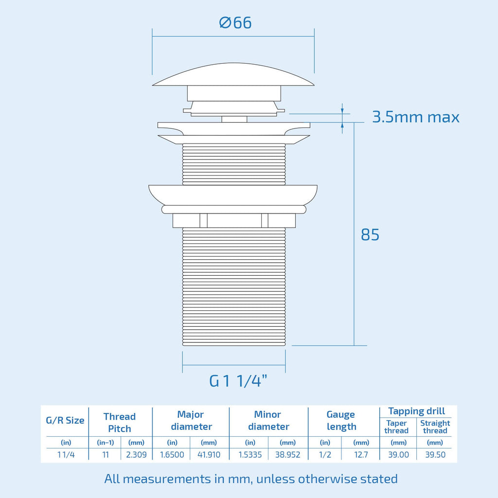 - Open & close by pushing the spring loaded pop up waste