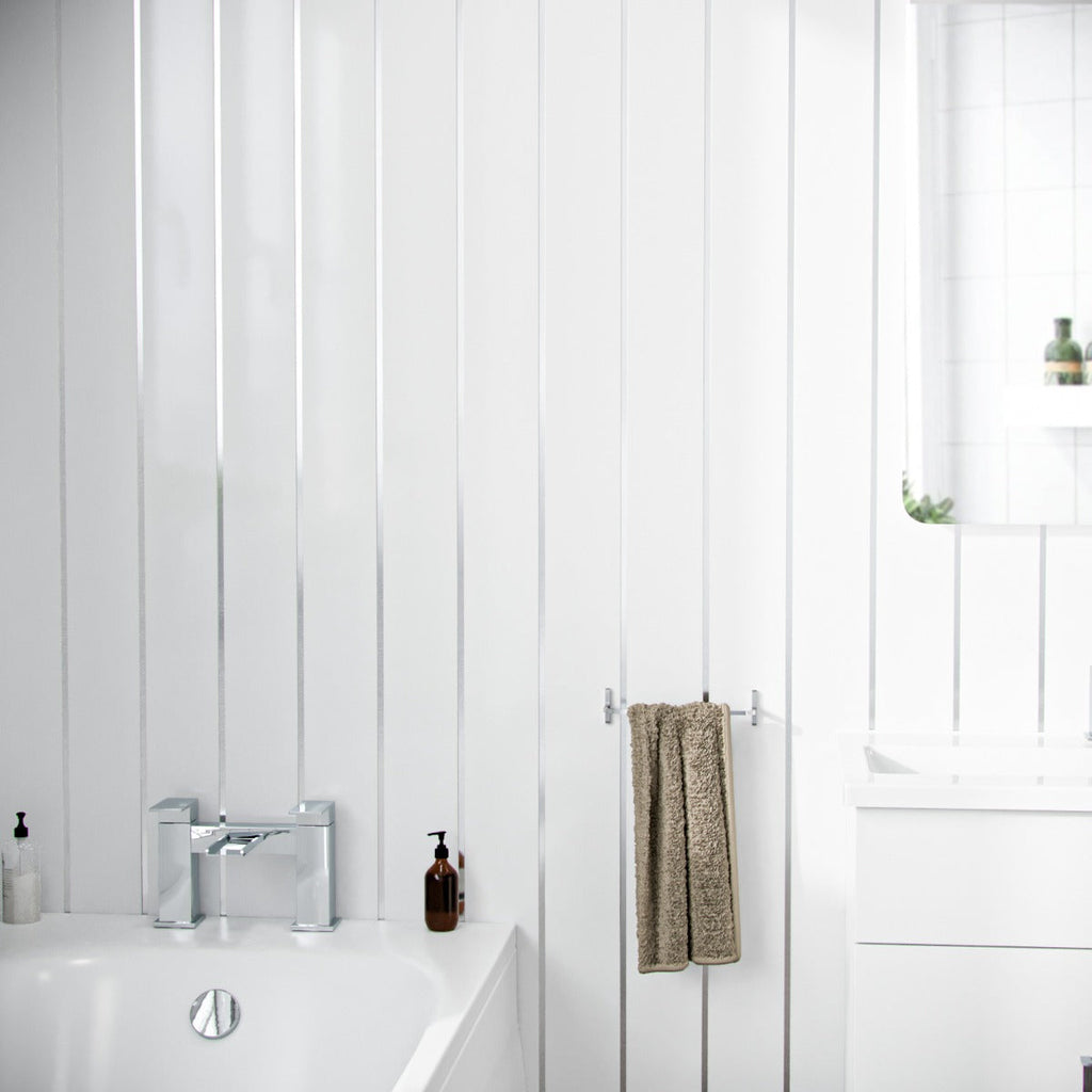 Gloss White Silver Wall Cladding is one of our most popular styles. A stylish Gloss White Silver cladding for a dramatic finish.