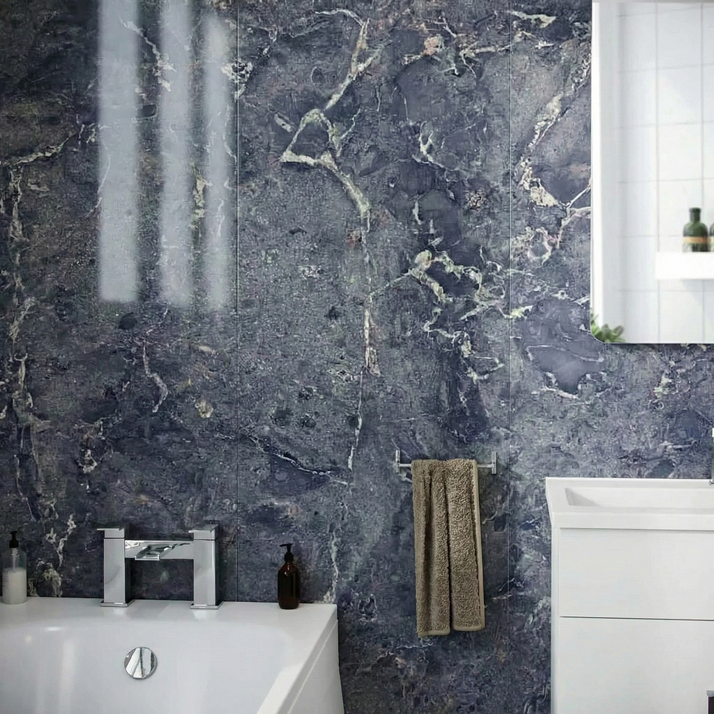 Graphite Blue Matte PVC wall cladding brings a bold, modern touch to bathroom interiors. These waterproof bathroom cladding panels are easy to install, low-maintenance, and offer a stylish alternative to traditional tiling at a fraction of the cost.