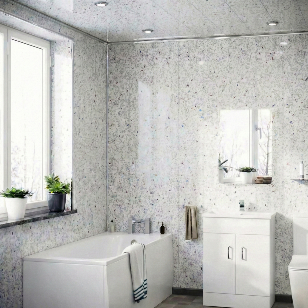 Manufactured from 100% waterproof, washable PVC, these panels are low maintenance and easy to clean with just a damp cloth. The colour remains bright over time, even with regular cleaning. Suitable for walls and ceilings of any length, PVC Ceiling/Shower Wall Quick Fix Panels provide a durable, cost-effective, and stylish solution for bathroom and interior upgrades.