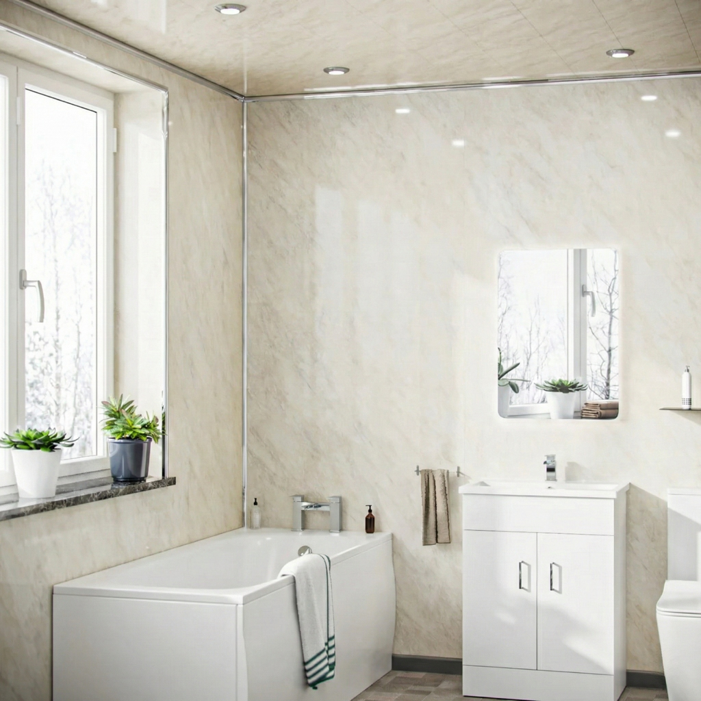 Manufactured from 100% waterproof, washable PVC, these panels are low maintenance and easy to clean with just a damp cloth. The colour remains bright over time, even with regular cleaning. Suitable for walls and ceilings of any length, PVC Ceiling/Shower Wall Quick Fix Panels provide a durable, cost-effective, and stylish solution for bathroom and interior upgrades.