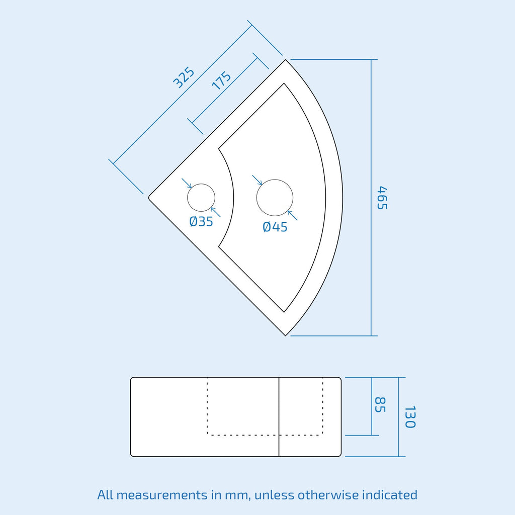 Transform your bathroom into a luxurious oasis with the addition of this stunning Quarter Circle White Corner Basin. With its beautiful shape this basin can elevate your homes aesthetic. This sleek and compact sink is designed to maximize available space while adding a touch of modern elegance to your bathroom décor.