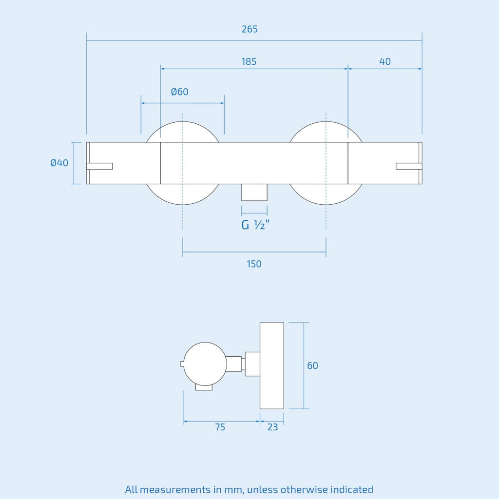 This exposed thermostatic shower valve allows you to halt or control the flow of your shower, while the thermostatic controls the temperature of the water giving you the best showering experience