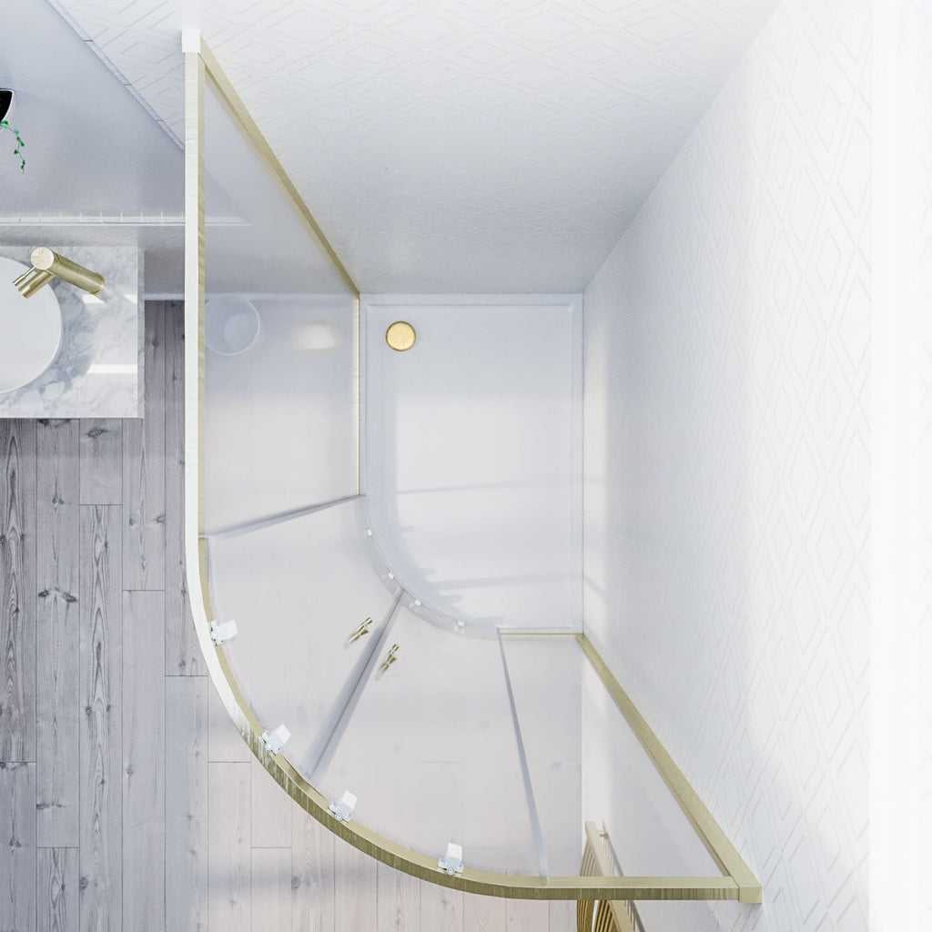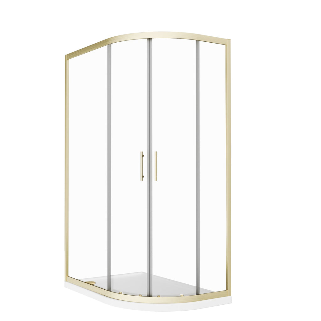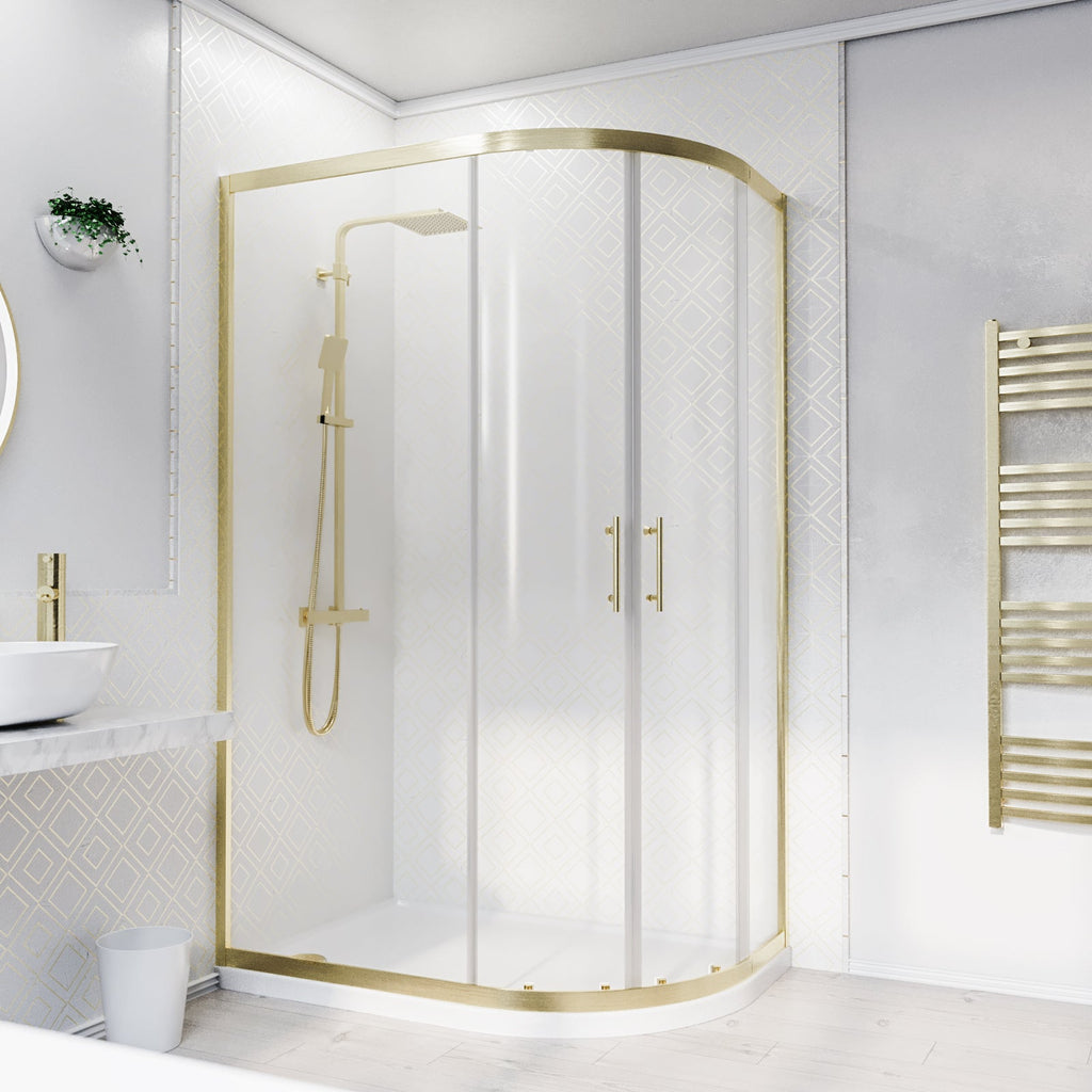This quadrant shower enclosure in a brushed brass finish comes with 6mm tempered glass which is specifically easy-clean-glass. The shower doors with a smooth, sliding mechanism and brushed brass shower door handles gives this shower an elegant feel. It’s not a problem if your walls are slightly positioned at the wrong angle as this enclosure adjusts by 20mm. The brushed brass finish will compliment contrasting light or dark coloured interiors and gives a modern look to the corner of your bath or shower room. Matching, taps and mirrors are also available.